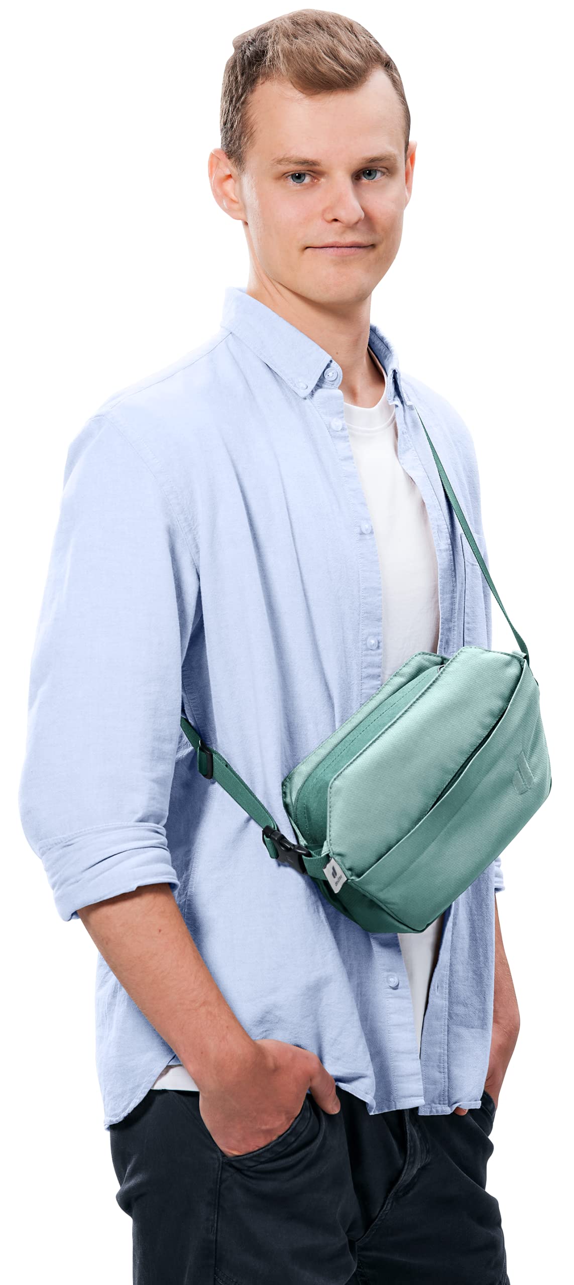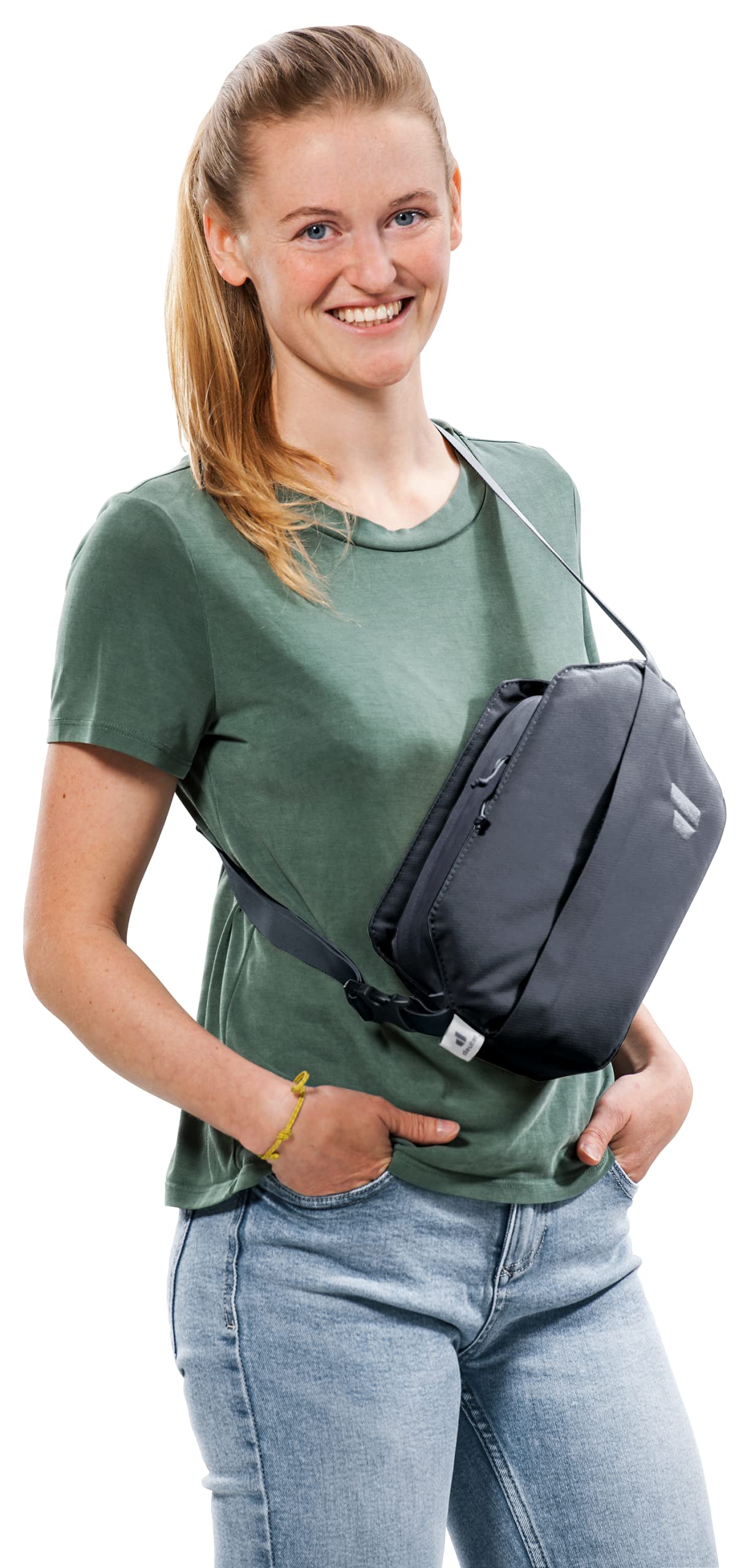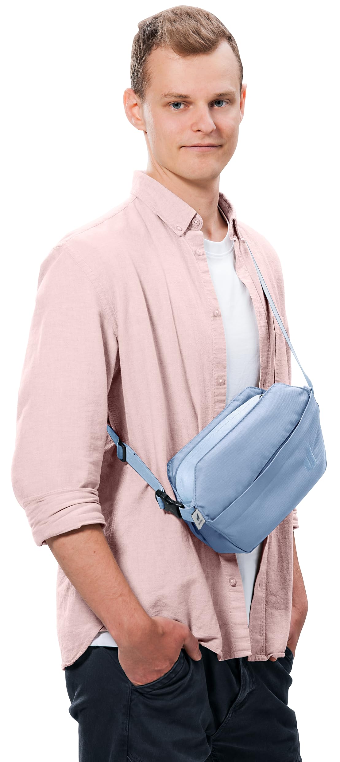 This crossbody bag has the perfect volume to accommodate travelers valuables and, in the main compartment, there is a padded sleeve for a tablet. As a bluesign product with body fabric made of 100% recycled materials, with components made using environmentally friendly, resource-efficient manufacturing practices, it also meets the Green Button standard, is climate neutral, and PFC free.