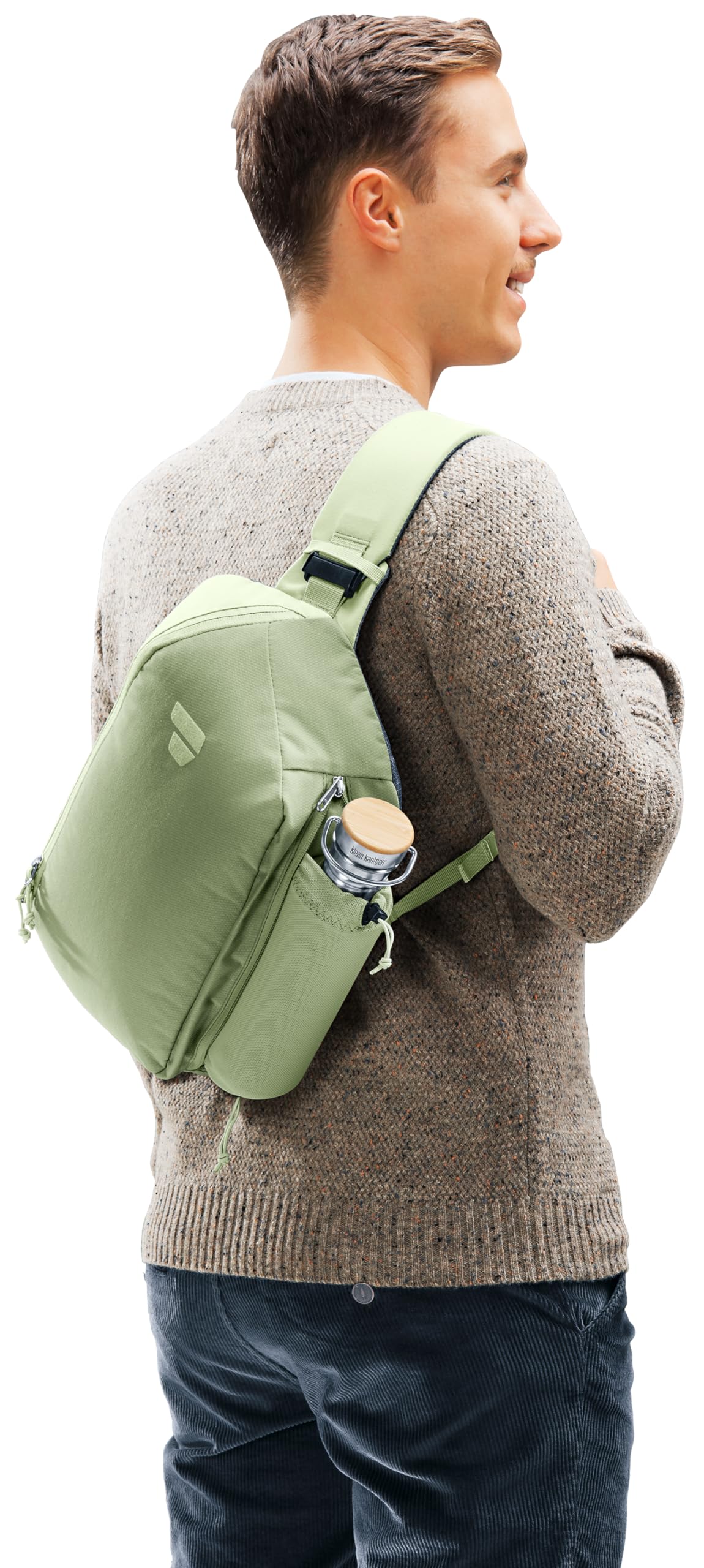This stylish sling bag gives you hands-free movement and is also super functional. With plenty of space divided up into compartments and pockets for your gear, valuables and a tablet. The larger model features a bottle holster with 2-sided access to accommodate a 1-liter bottle. And to make sure youre not favoring one shoulder, the Stroof can be slung over either shoulder.