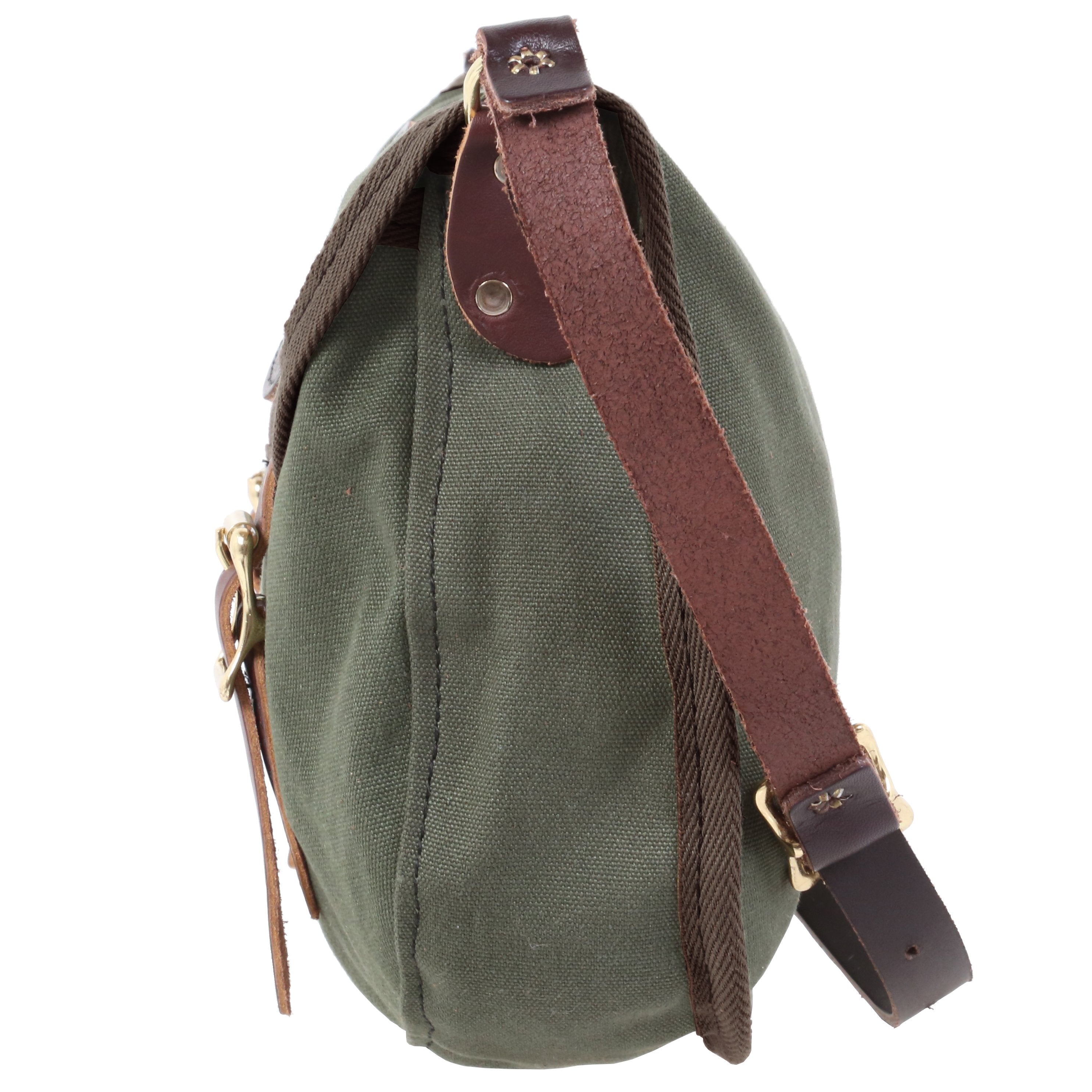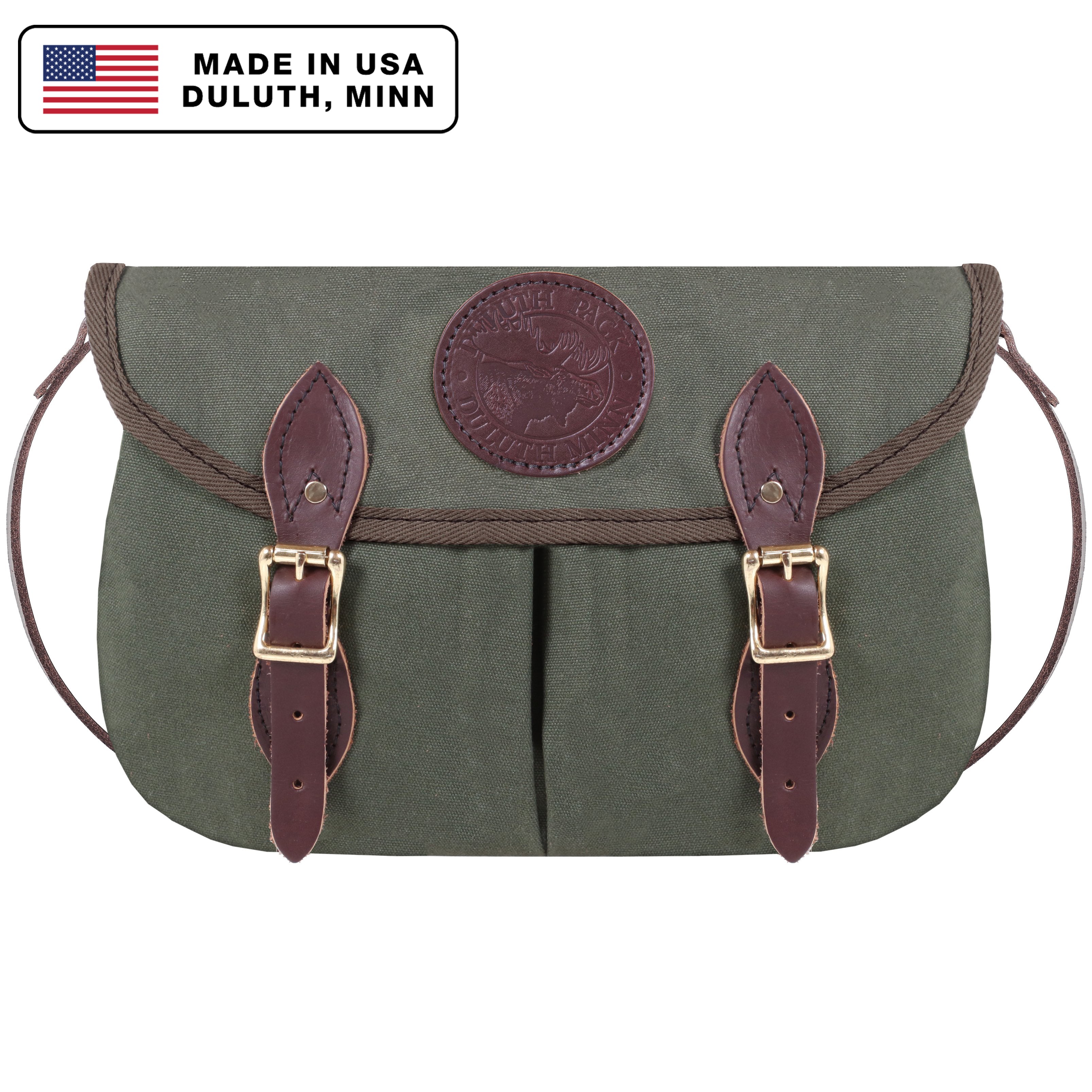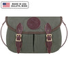 Adjustable leather shoudler strap. Double front pockets for added organization. High quality roller buckle & premium leather flap strap. Tough 15 ounce cotton canvas construction. Guaranteed for life. Made in the USA.