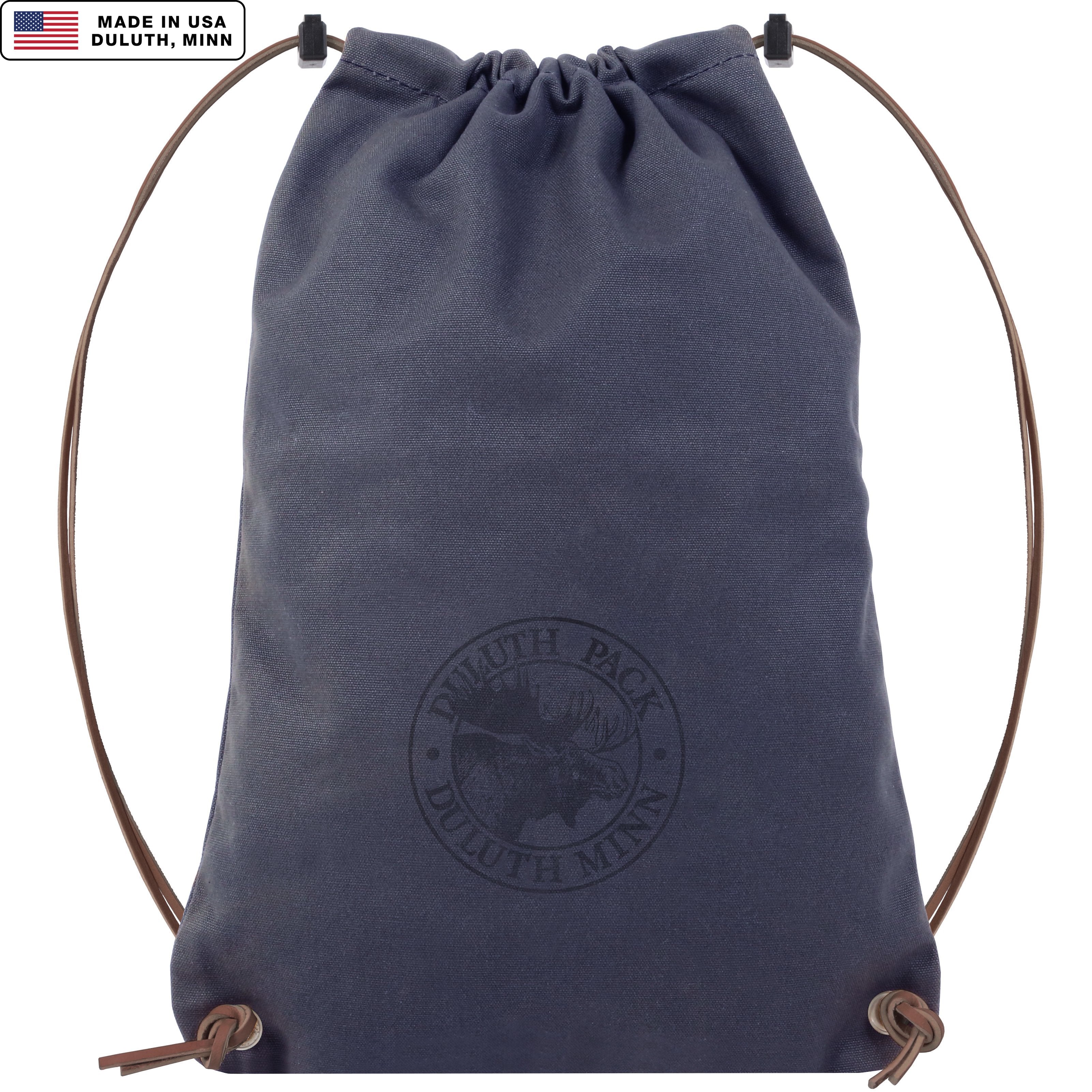 High quality leather drawstring Tough 15 ounce cotton canvas construction. Guaranteed for life. Made in the USA.