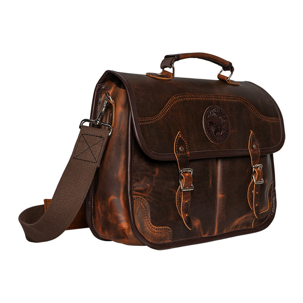 • Thick, premium Heritage Waxed Bison Leather construction. Premium Waxed Bison Leather grab handle and adjustable padded shoulder strap for comfortable carrying.