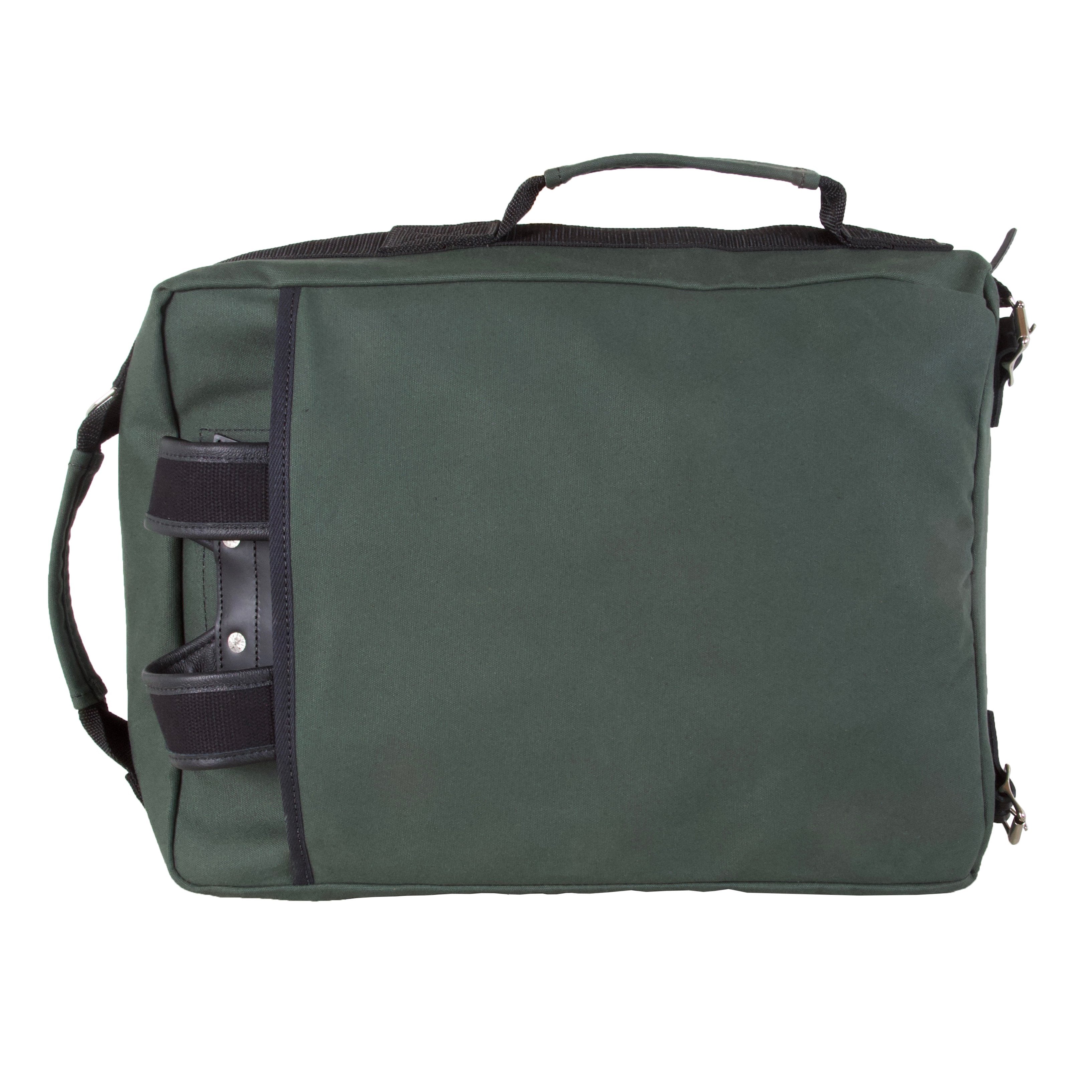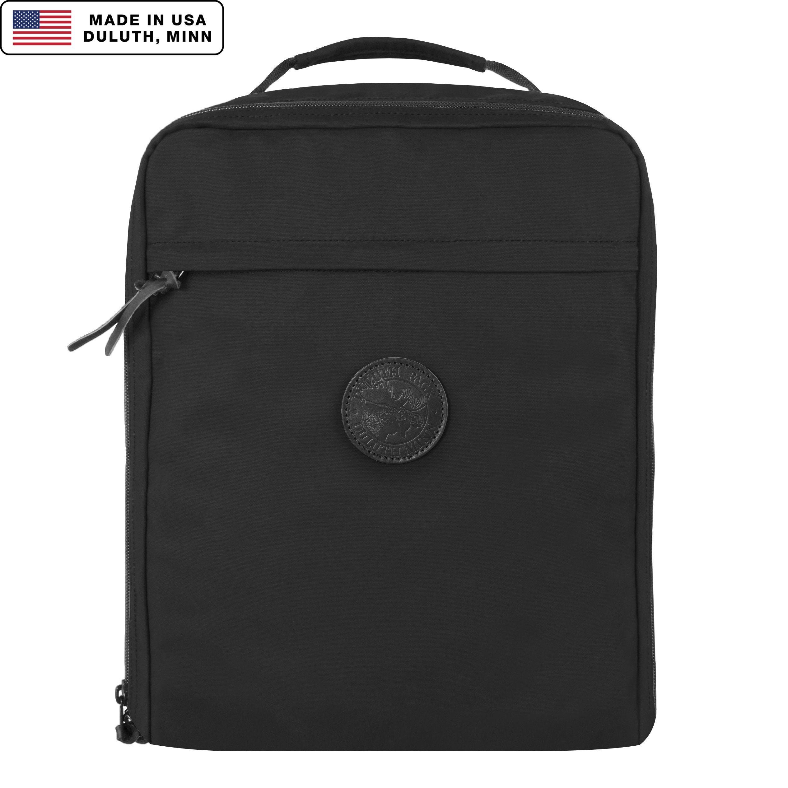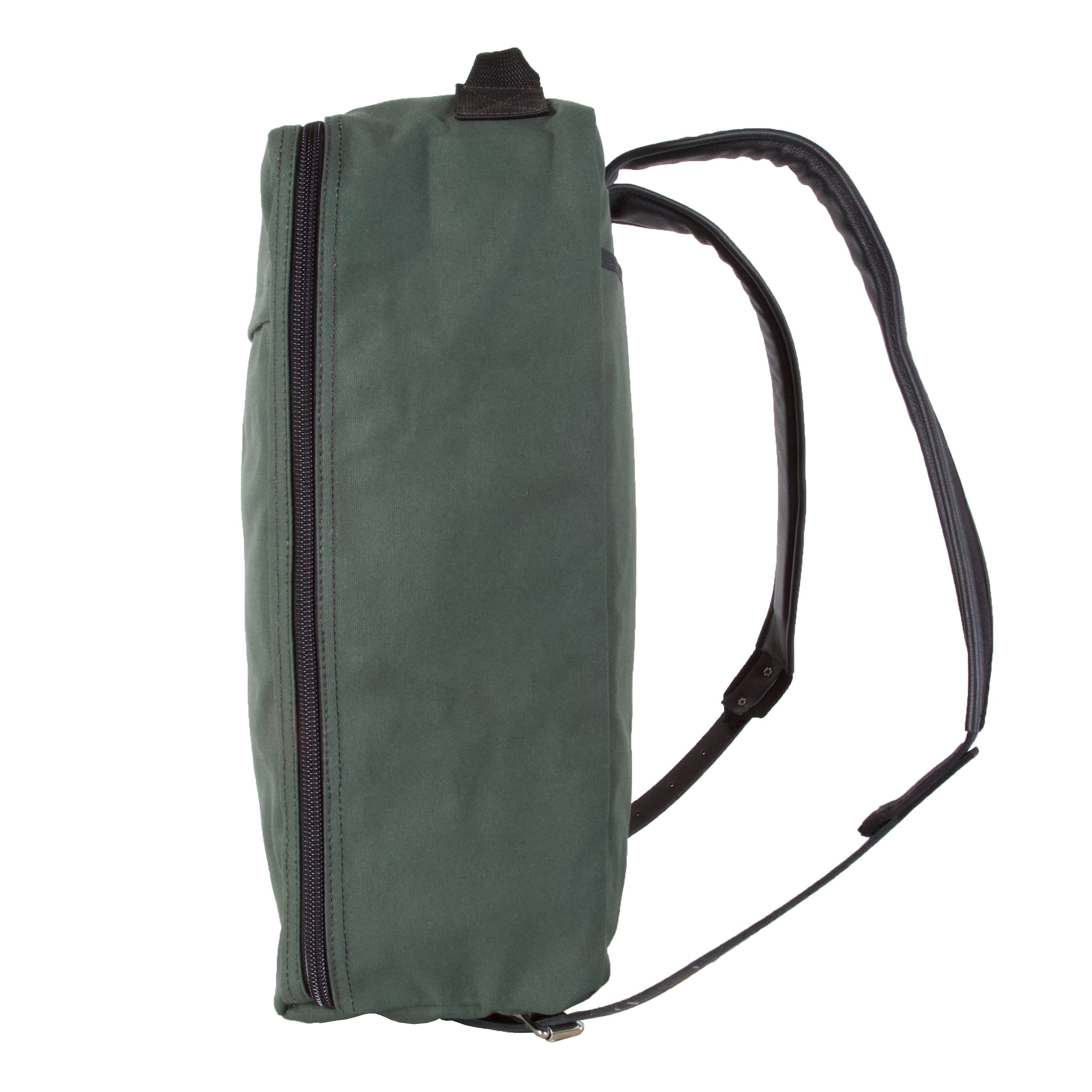 Burly 15-ounce canvas construction. Three easy ways to carry: backpack straps, detachable shoulder strap, & two grab handles. Full length zipper opens to a large compartment. Interior lined with nylon and boasts three interior zippered pocket to stay organized. Guaranteed for life. Made in the USA.