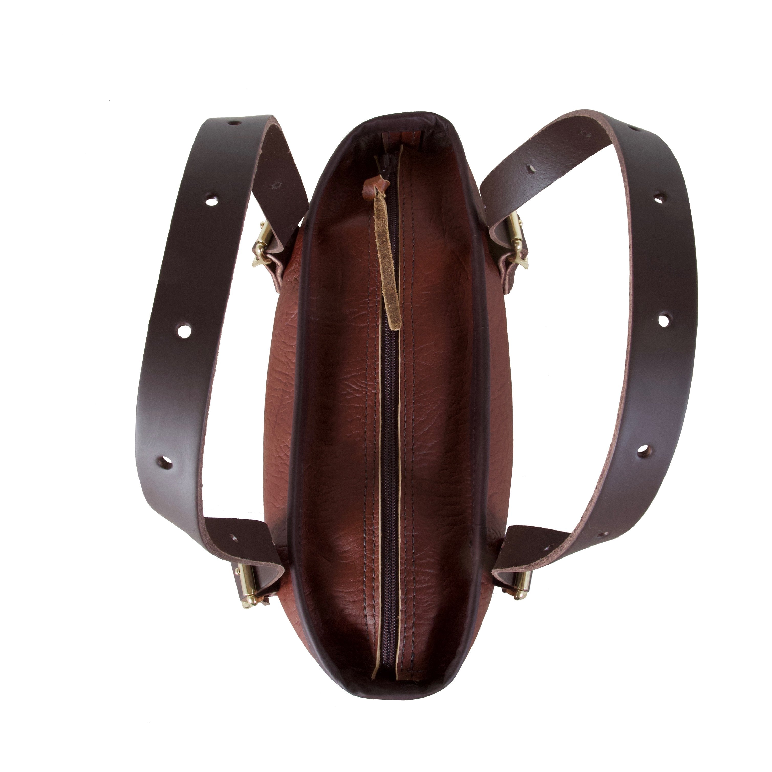 Handles can be adjusted with roller buckles for multiple length options Interior zipped hang pocket for easy access to small items USA Raised premium Bison leather Guaranteed for life. Made in the USA.