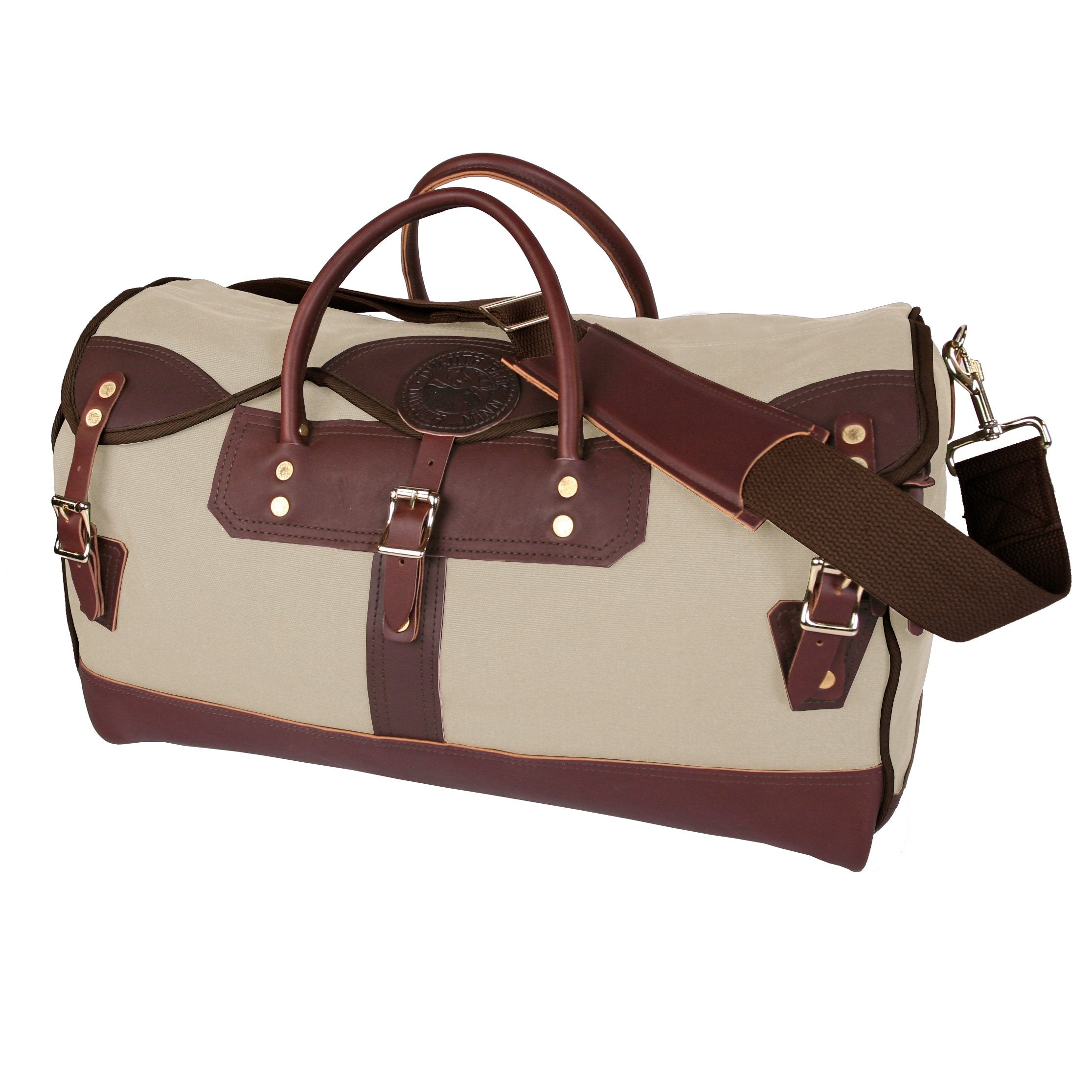 The Sportsman's Duffel is our most popular duffel and is made for travel. Our rugged 15 oz canvas bag with hand-cut leather is a dependable duffel that will be by your side for years to come. The rolled leather handles and a shoulder strap make carrying loads easy, whether they are big or small. The top-loading zipper is protected from the elements by the flap strap construction, making this bag ideal for trips of any nature, in any nature.
