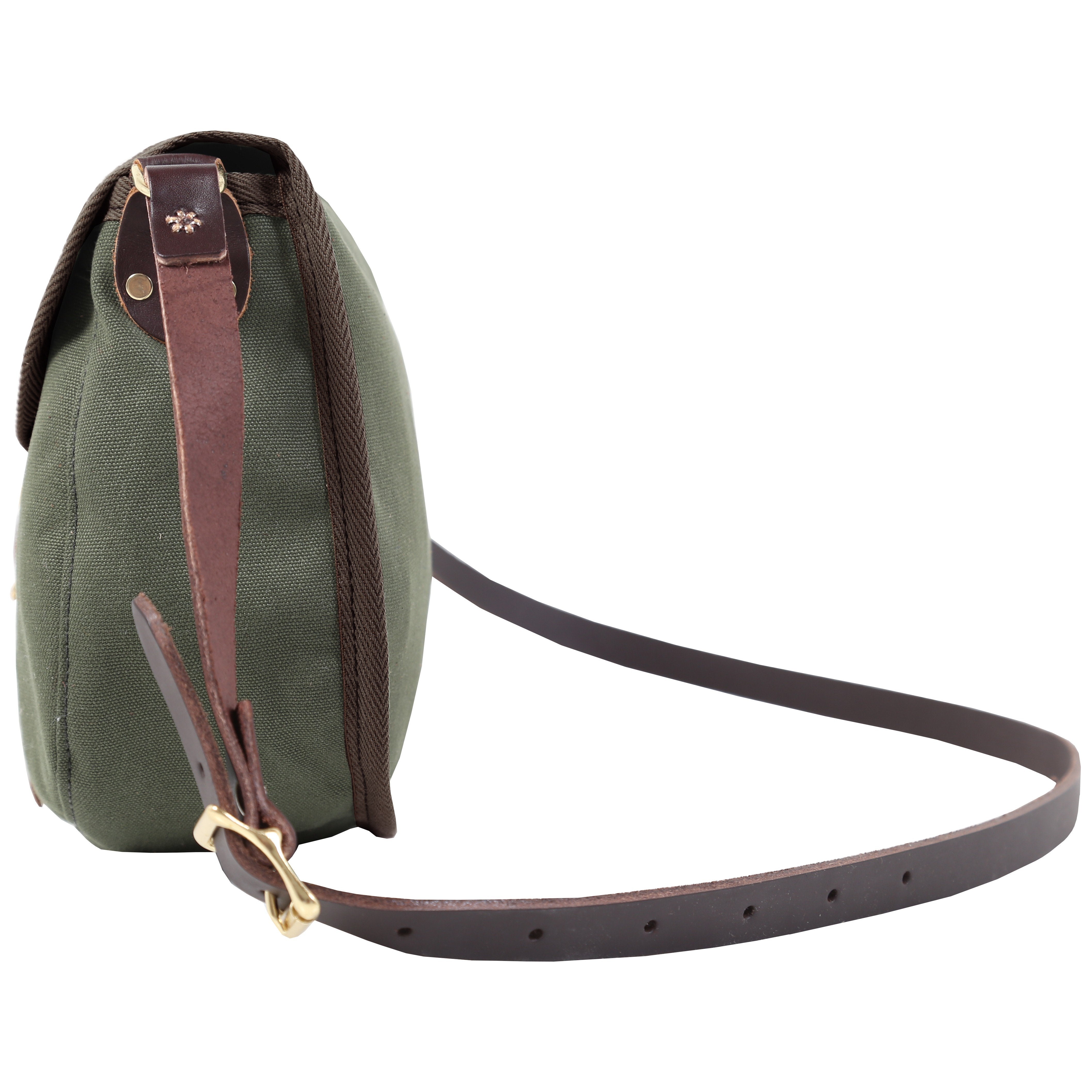 Adjustable leather shoudler strap. Internal slip pocket for organization. High quality roller buckle & premium leather flap strap. Tough 15 ounce cotton canvas construction. Guaranteed for life. Made in the USA.