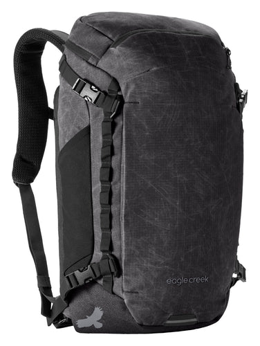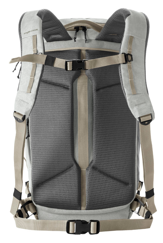 This globetrotting backpack aces the whole gamut of travel missions, from commuting to coworking spaces to airplane travel requiring a full 26 liters of cargo capacity. Breathable construction for the back panel and shoulder straps ensures daylong comfort. And 100% recycled, waxed ripstop fabric develops a patina with every trip through cities and villages, markets and museums. Dedicated pockets for a laptop and passport provide ample organization, and the side entry makes accessing essentials easy when its hitched to the trolley of rolling luggage.