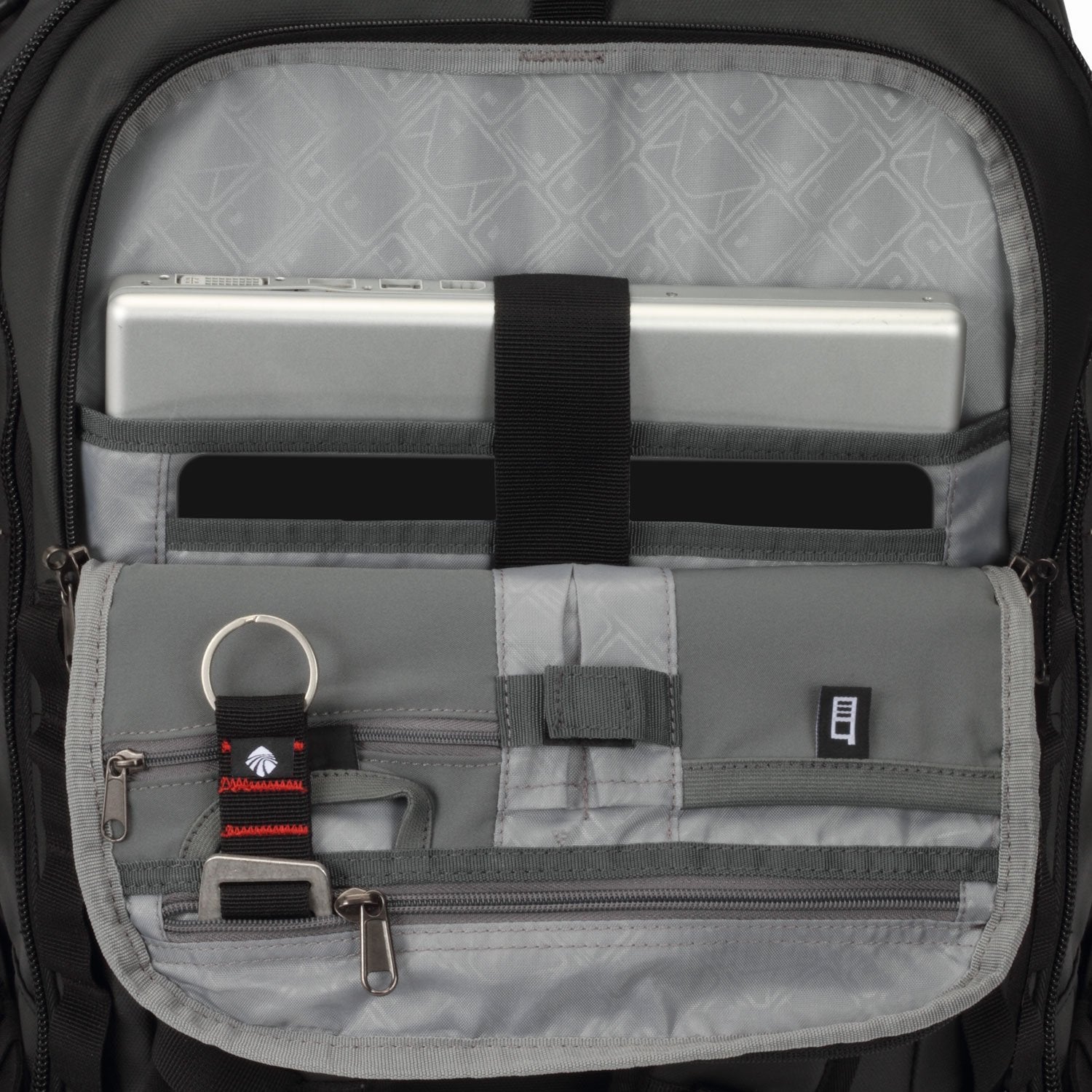 • Multiple carry options include Zip-away backpack straps, removable padded shoulder strap, and multiple grab handles