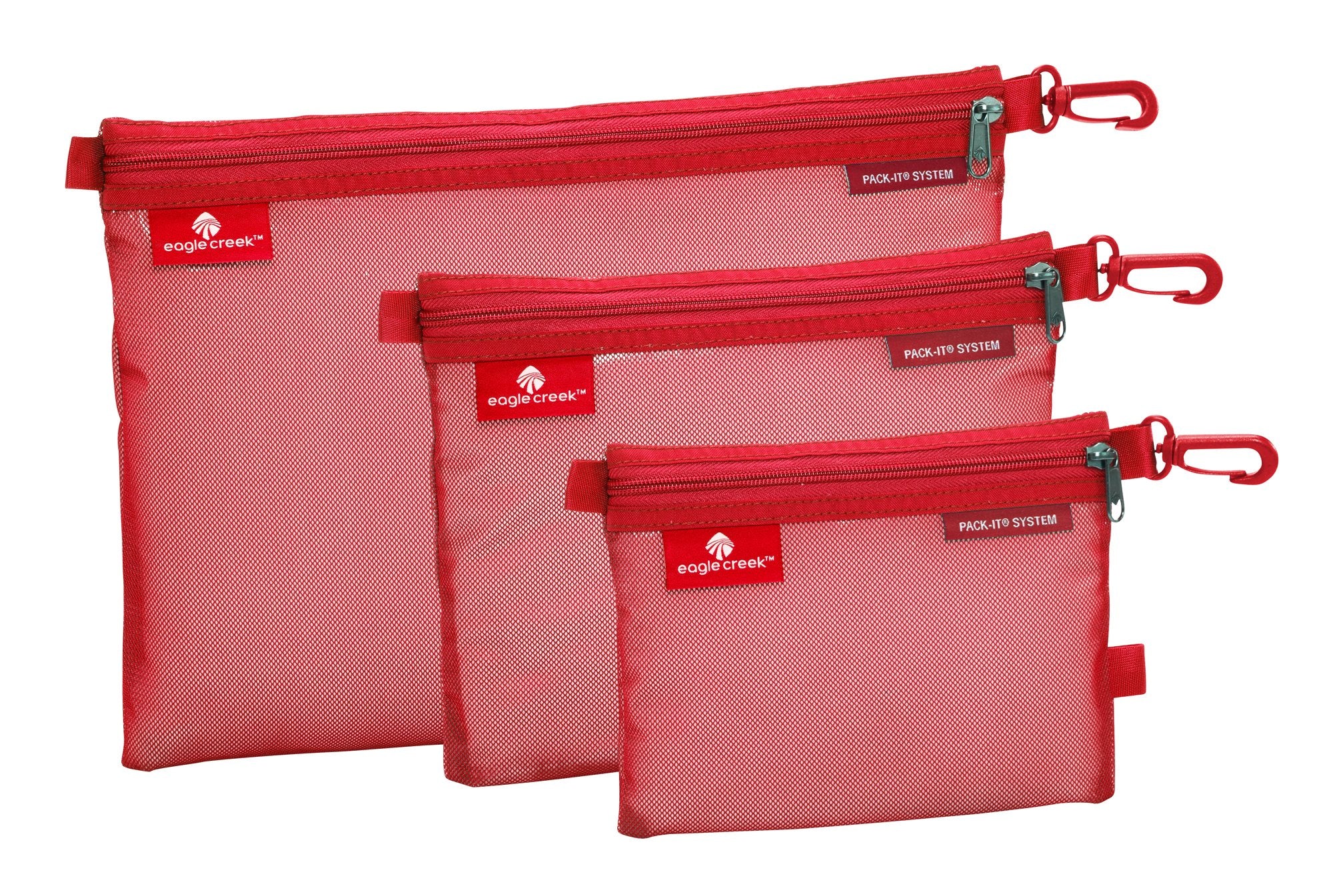 With a million-and-one uses, use large Pack-It Sacs to contain full-size toiletries, computer cords, reading material, and any smaller items that sometimes get lost inside your travel bag. Made from a water-repellent laminated mesh material to help your things stay nice and dry.