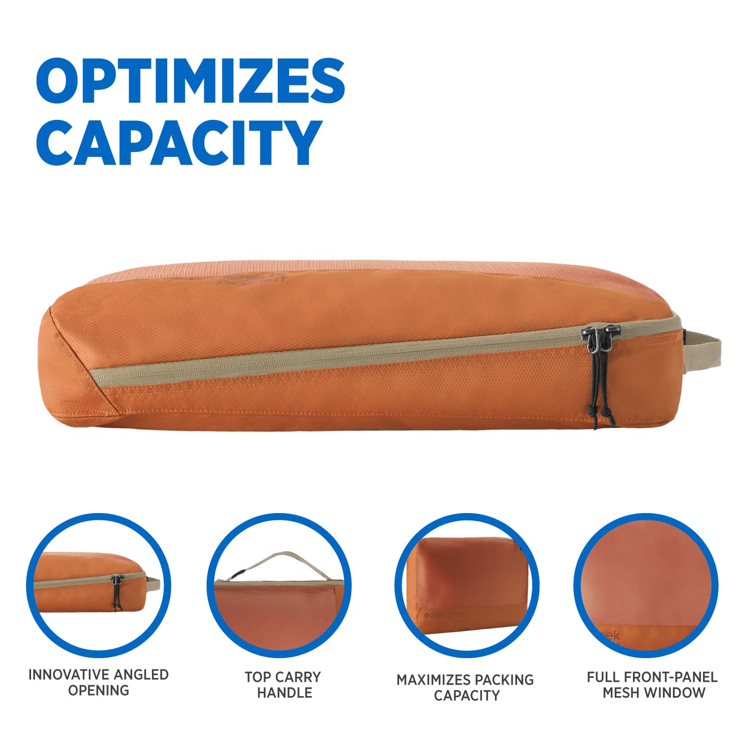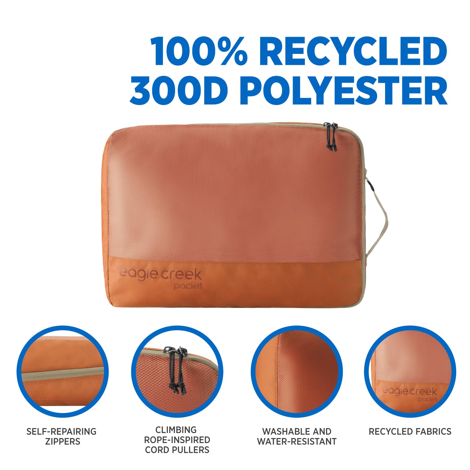 Find socks and underwear fast with this structured, mesh-topped organizer, which spotlights small garments. The angled opening holds rolled or folded clothing in place during packing and stores them into a tidy, space-saving cube. Fabrics are water-resistant and 100% recycled.