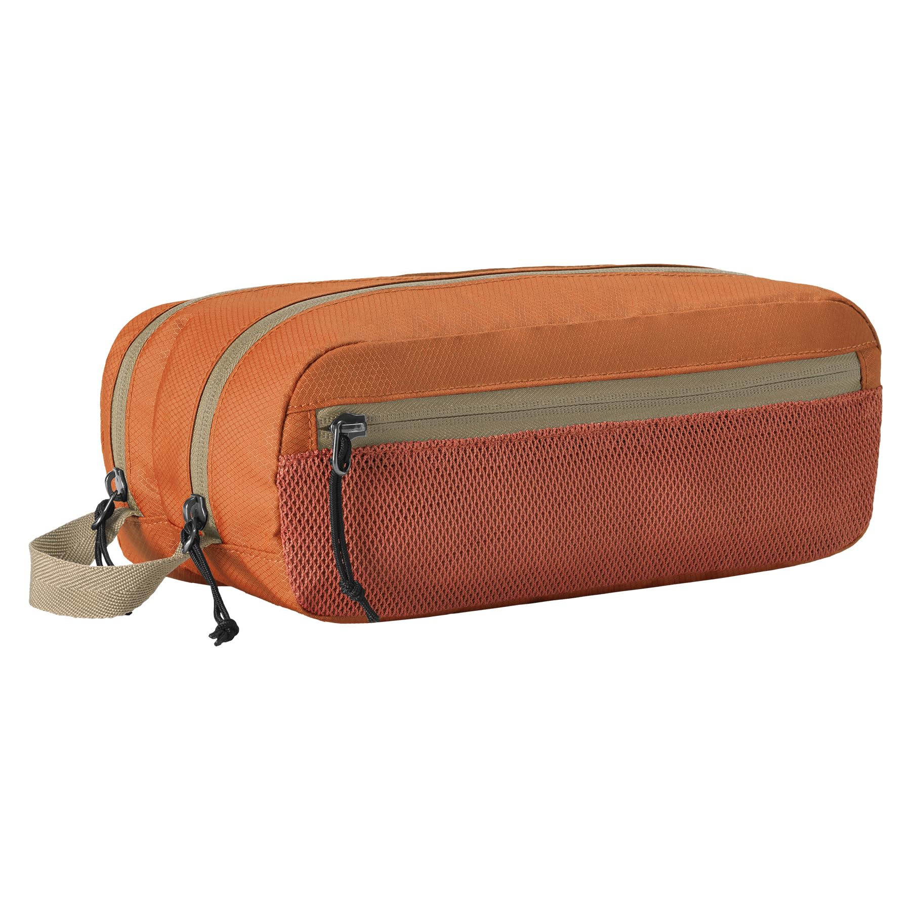 Heres the modern travelers dopp kit, updated with 100% recycled fabrics that are water-resistant. A mesh-sided zippered pocket secures a toothbrush or small accessories, and full-length zippers on the two structured compartments expose contents to make them easily located.