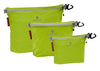 Ultra light packing sac solutions that weigh in at less than 2.2 oz cumulatively. Made of Silnylon and designed to help you keep small accessories organized while traveling. Use them to organize your toiletries, cords and receipts. Provide customization and space savings for any backpack, day bag or piece of luggage with Pack-It Specter packing sac organizers.