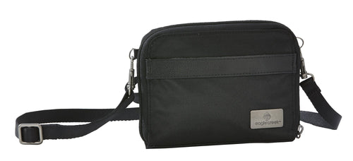 A mini crossbody with removable strap provides versatility for alternative use as a wallet inside a larger capacity day bag. RFID Blocking technology for travel security assurance.