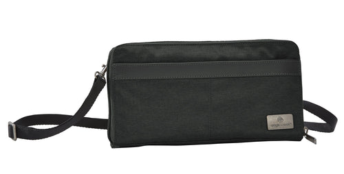 Slim and versatile, this crossbody clutch is sized for easy carry with organization for ID, credit cards, receipts, and travel documents.
