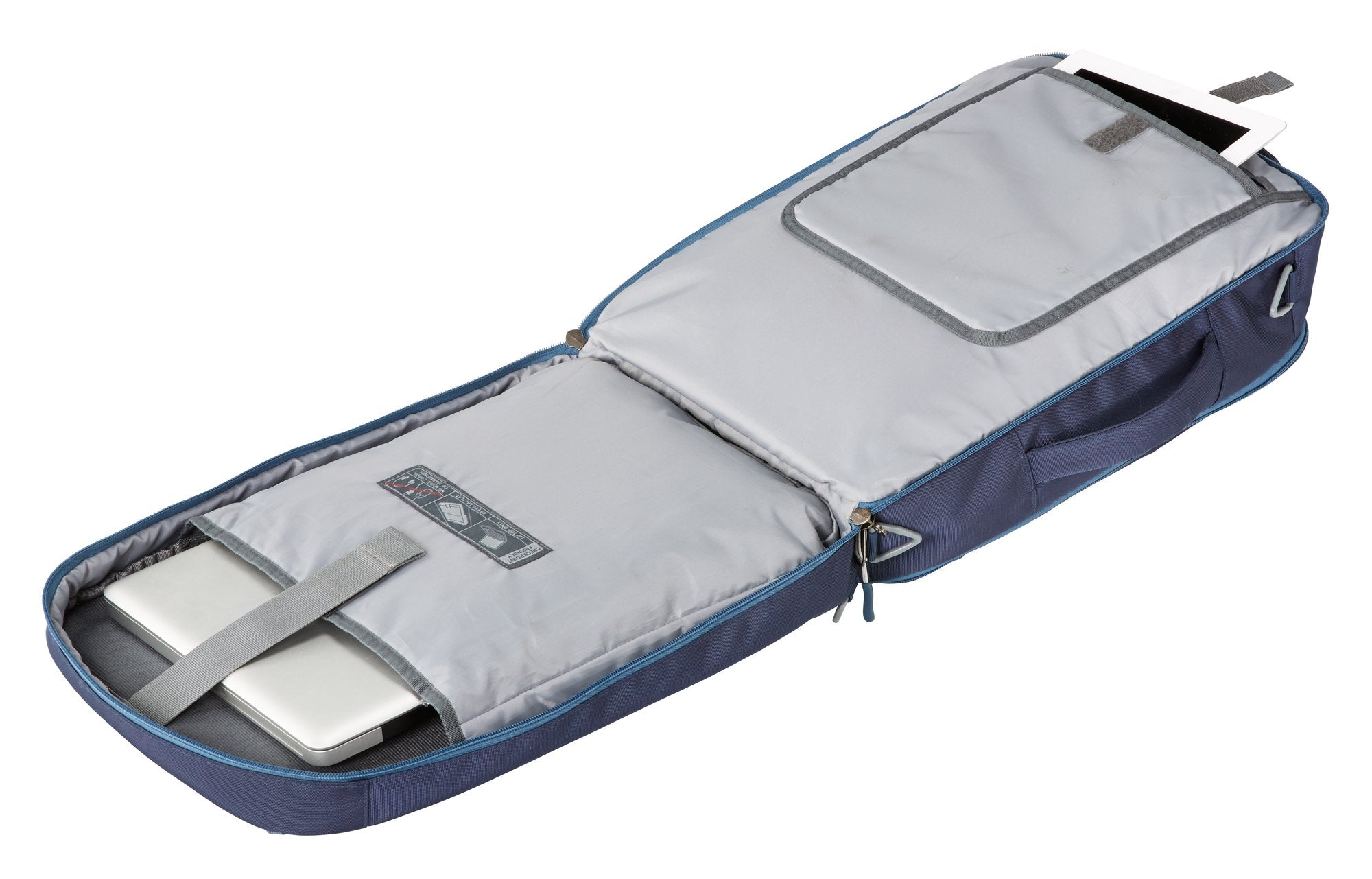 • A dedicated Checkpoint Friendly laptop compartment with a butterfly-style opening sized for a 17" laptop. Also features a tablet sleeve.