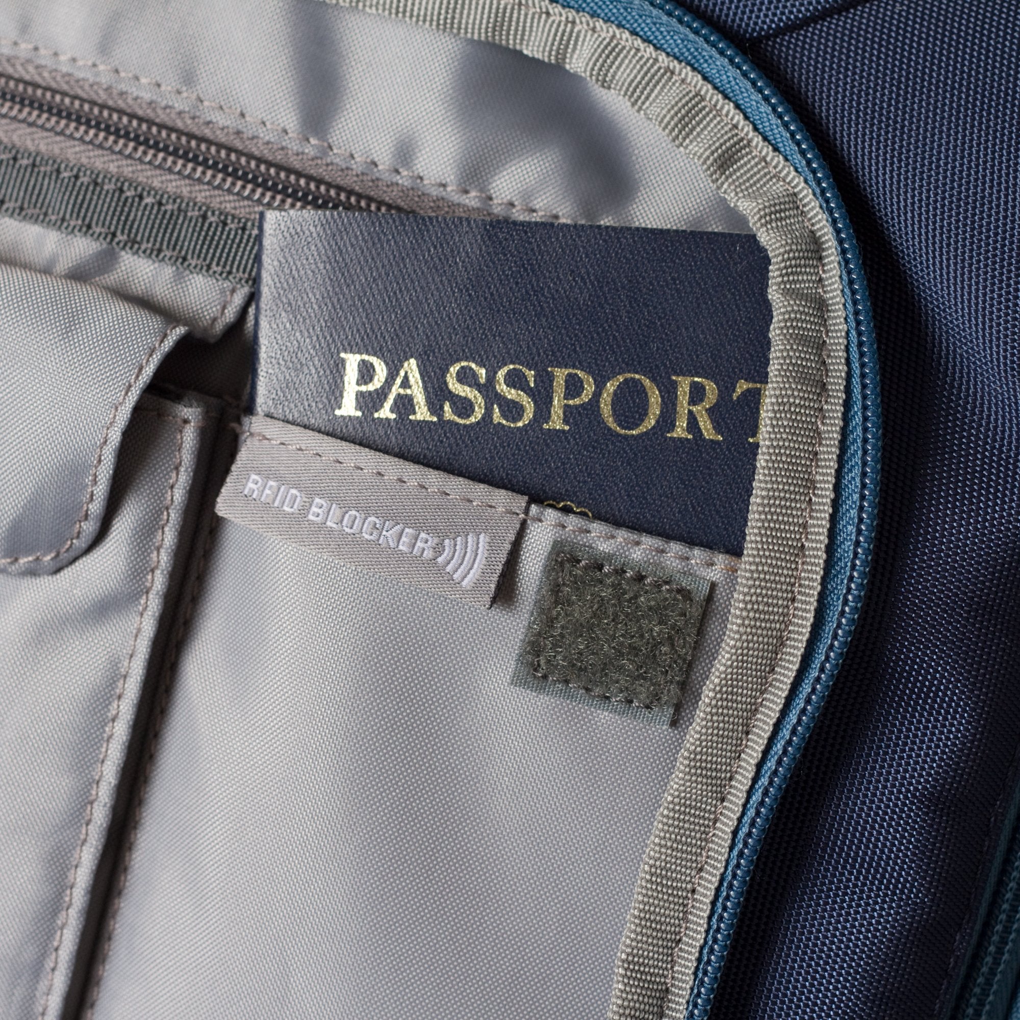 • Anti-Theft: Lockable, self-repairing zippers on main, laptop, and organizer compartments, lock point grommets, plus an RFID Blocker pocket for ID protection