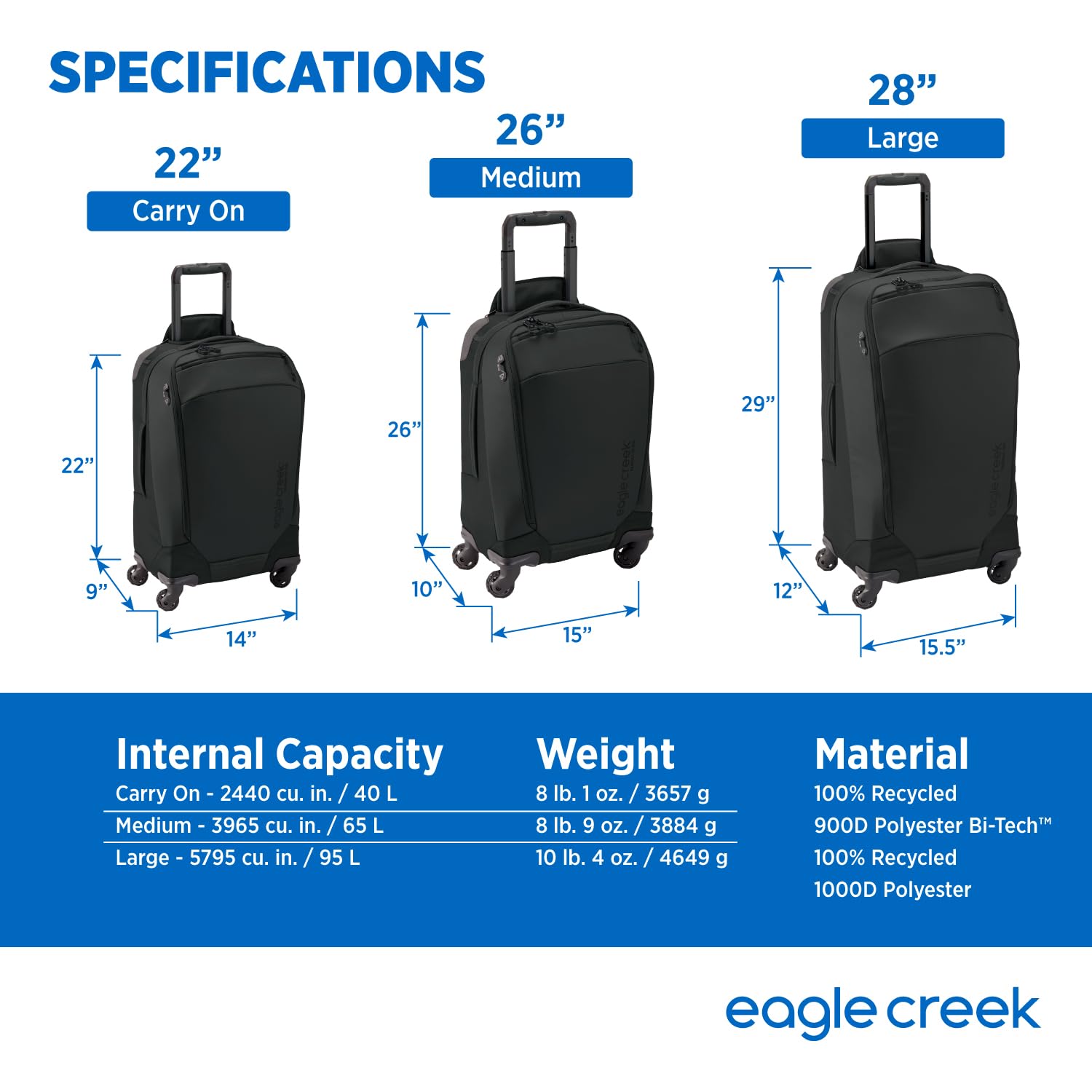 Eagle Creek Tarmac XE 28" Large Check in 4 Wheeled Luggage, 95L