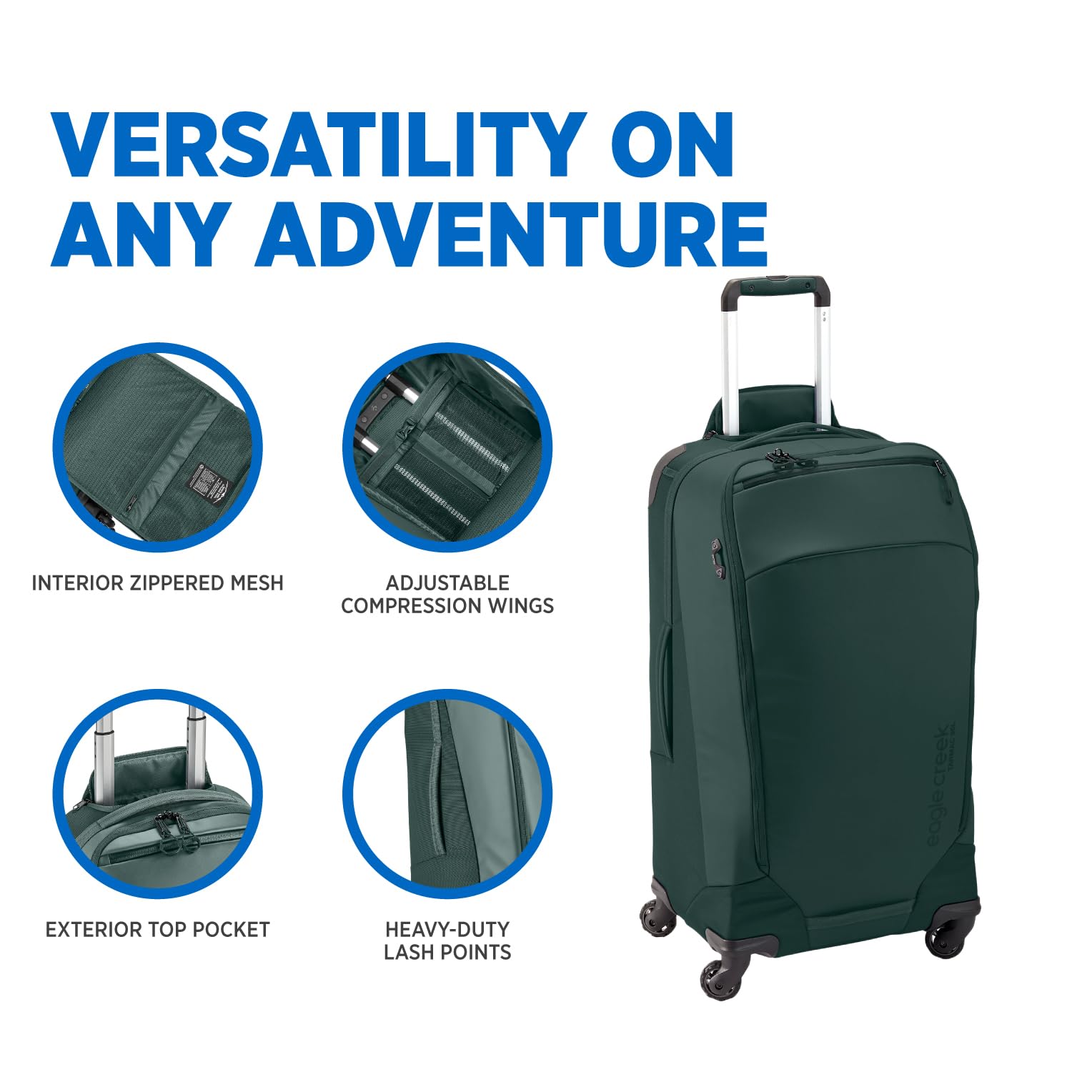 The ultimate in rollable carry on luggage, this spinner bag has four all-wheel drive wheels that provide effortless mobility as you travel. The Tarmac XE 4-Wheel Carry On is the perfect combination of durability, organization and lightweight carry. With reinforced Hypalon protection and weather-resistant 100% recycled fabrics, this bag is backed by the No Matter What Warranty because it was built to tackle all elements.