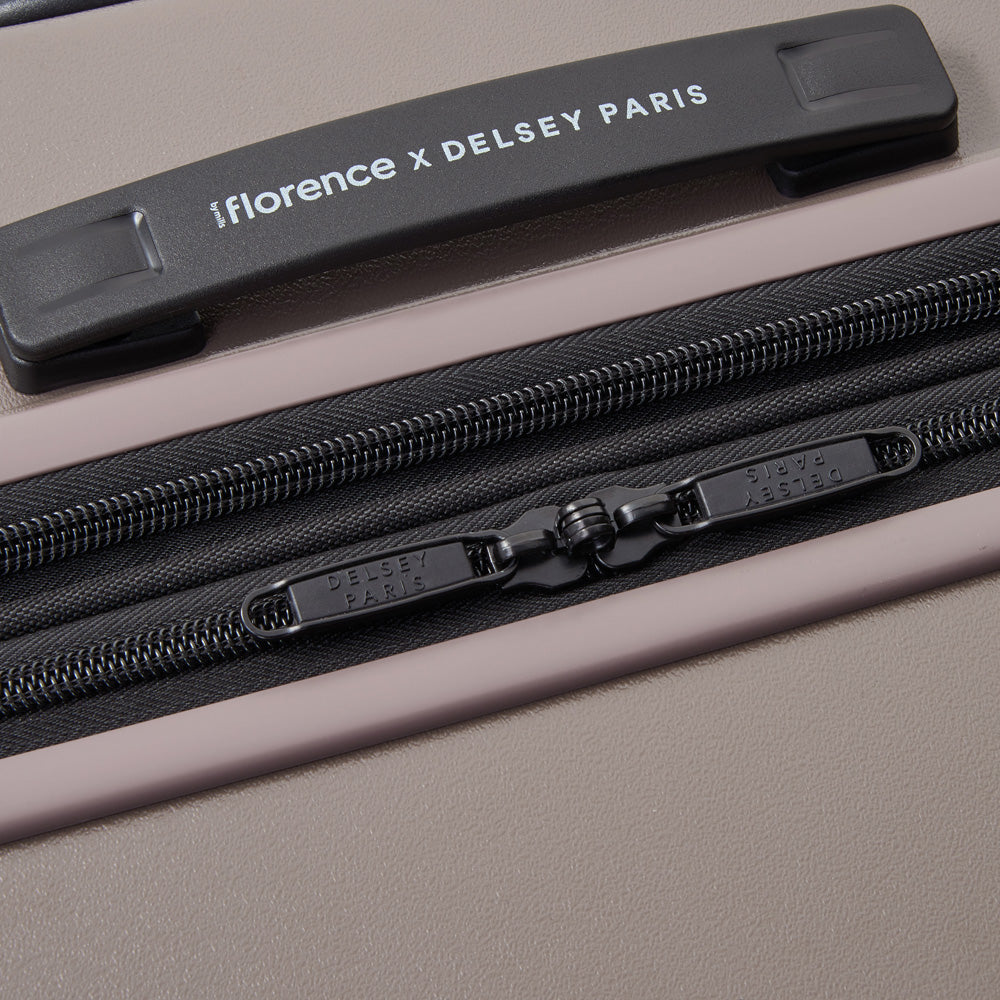 For those who wander and wonder, meet your new essentials. The florence by mills x DELSEY PARIS collection is crafted to make every adventure unforgettable. Curated together with and inspired by florence by mills' founder, Millie Bobby Brown, the collection is a vibrant lifestyle and spirit of self-expression. This lineup is for the dreamers, the go-getters, and the weekend warriors who want bags that look as good as they feel. From versatile backpacks to chic crossbodies and hardside luggage that’s equal parts tough and sleek, every piece is made to keep up with your life while being kind to the planet. Practical, stylish, and eco-friendly! It’s not just about where you’re going—it’s about how you get there. Pack with purpose, travel with confidence, and style your way to make every journey as special as you are. Catch Flights (not feelings) with this stylish, eco-friendly hardside luggage. Smooth double wheels, an expandable design, and organized interior make it the perfect travel buddy for every adventure. Pack it up and let’s go!