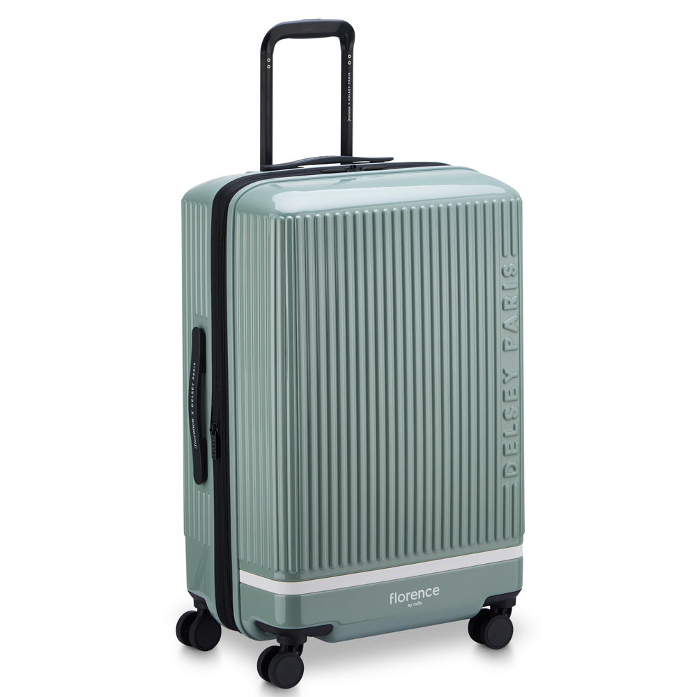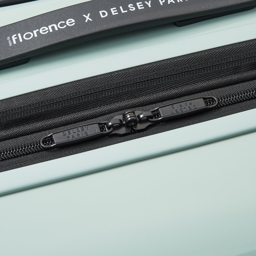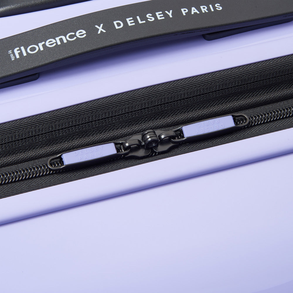 For those who wander and wonder, meet your new essentials. The florence by mills x DELSEY PARIS collection is crafted to make every adventure unforgettable. Curated together with and inspired by florence by mills' founder, Millie Bobby Brown, the collection is a vibrant lifestyle and spirit of self-expression. This lineup is for the dreamers, the go-getters, and the weekend warriors who want bags that look as good as they feel. From versatile backpacks to chic crossbodies and hardside luggage that’s equal parts tough and sleek, every piece is made to keep up with your life while being kind to the planet. Practical, stylish, and eco-friendly! It’s not just about where you’re going—it’s about how you get there. Pack with purpose, travel with confidence, and style your way to make every journey as special as you are. Let the good times roll with Spin Me Away Hardside Luggage. Made for the bold and eco-conscious traveler, this suitcase is all about ease, style, and staying organized. With double spinner wheels, a roomy interior, and a handy toolkit to help keep your luggage in top shape for years to come, it’s got everything you need to take on the world.