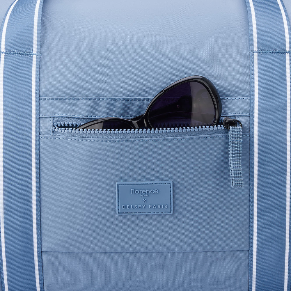 For those who wander and wonder, meet your new essentials. The florence by mills x DELSEY PARIS collection is crafted to make every adventure unforgettable. Curated together with and inspired by florence by mills' founder, Millie Bobby Brown, the collection is a vibrant lifestyle and spirit of self-expression. This lineup is for the dreamers, the go-getters, and the weekend warriors who want bags that look as good as they feel. From versatile backpacks to chic crossbodies and hardside luggage that’s equal parts tough and sleek, every piece is made to keep up with your life while being kind to the planet. Practical, stylish, and eco-friendly! It’s not just about where you’re going—it’s about how you get there. Pack with purpose, travel with confidence, and style your way to make every journey as special as you are. Get ready to make your Sweet Escape with this travel-friendly duffel. Compact but roomy, with a classic silhouette and eco-friendly materials, it’s designed for easy carrying and ultimate convenience. Whether it’s a road trip or a weekend retreat, this duffel is all about freedom and fun.