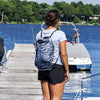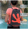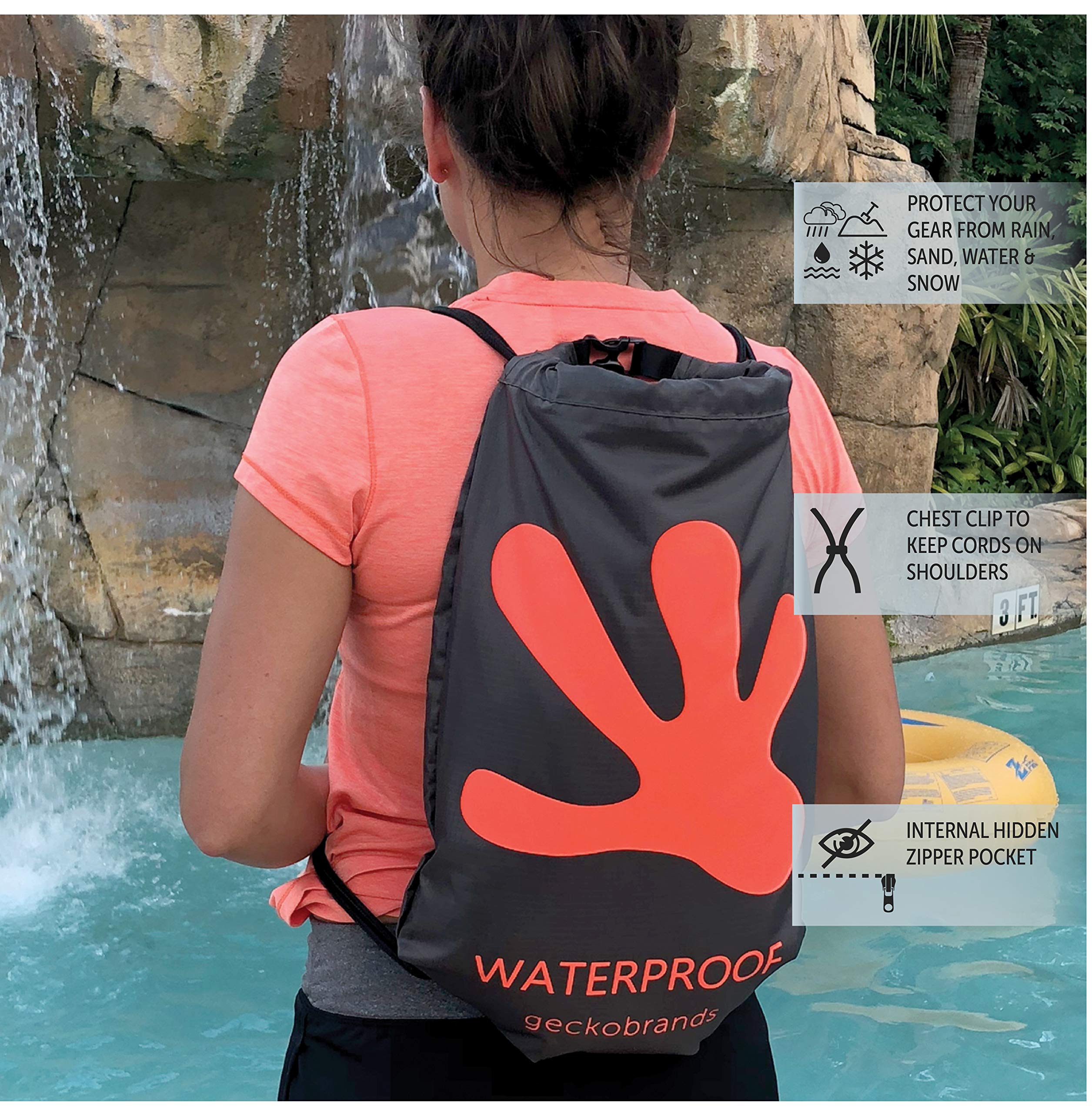 This is the ideal backpack for rain, light water activities, beach or snow. it weighs just .5 lbs. and has multiple pockets for your valuable gear. It collapses into the palm of your hand and includes a chest clip helps keep the cords on your shoulders.