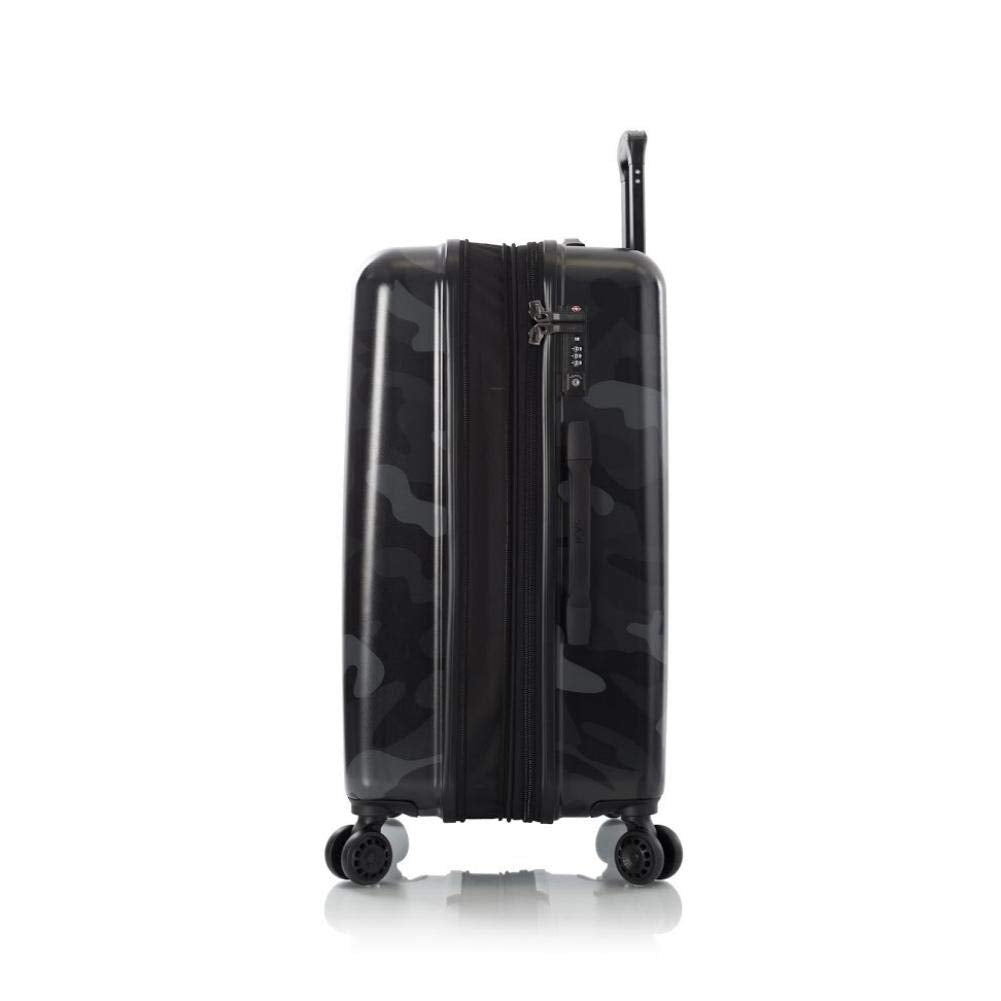 The Camo luggage is lightweight, durable, and scratch resistant. The luggage has a fully lined interior with multiple zippered pockets for easy organization. The Black Camo luggage features a gel cushioned top and side handles as well as 360-degree spinner wheels for easy maneuverability.