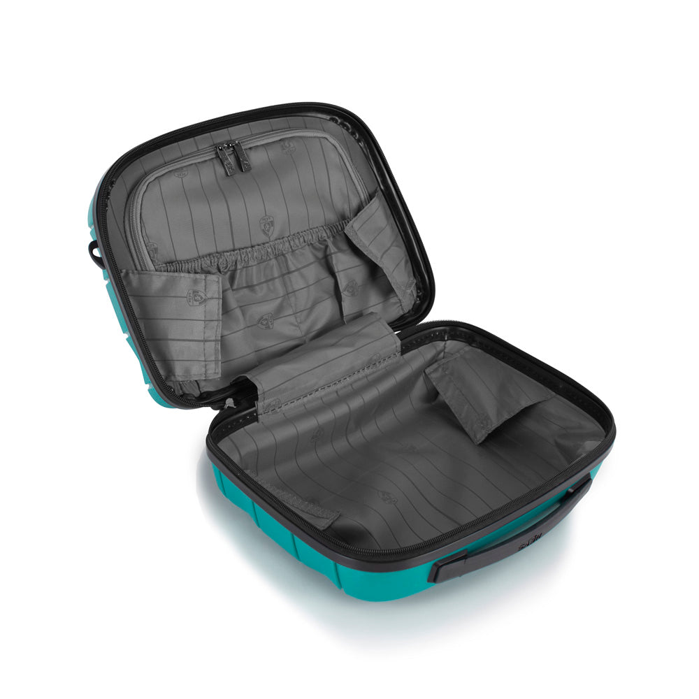 Indulge in luxury travel with the Heys’ Milo Beauty Hardside case, designed exclusively to match the Heys Milos 3-piece set. Each case is available in five chic metallic colors and boasts a sophisticated dual-textured shell that catches the eye wherever you go. Crafted from Durable Duraflexâ„ ¢ Material, a marvel of engineering, this case is not only lightweight but incredibly resilient. This case ensures your belongings are safe and can withstand a 750lb impact without breaking. Keep yourself organized with this case’s multiple pockets, and fully lined interior with a zipper divider, offering dedicated space for your must-have go-to makeup and toiletry items. Equipped with a trolley slide-through sleeve to allow hands-free travel while rushing through a busy airport allowing you to have a hand free for your coffee. The adjustable shoulder strap also allows you to carry your essentials effortlessly. Whether you are jet-setting or on a weekend gateway, this Beauty Case elevates your travel experience. Complete your Milos collection seamlessly with this sophisticated matching case, blending style, durability, and functionality. Elevate your travel game and make a statement wherever your adventures take you. Travel smart, travel chic!