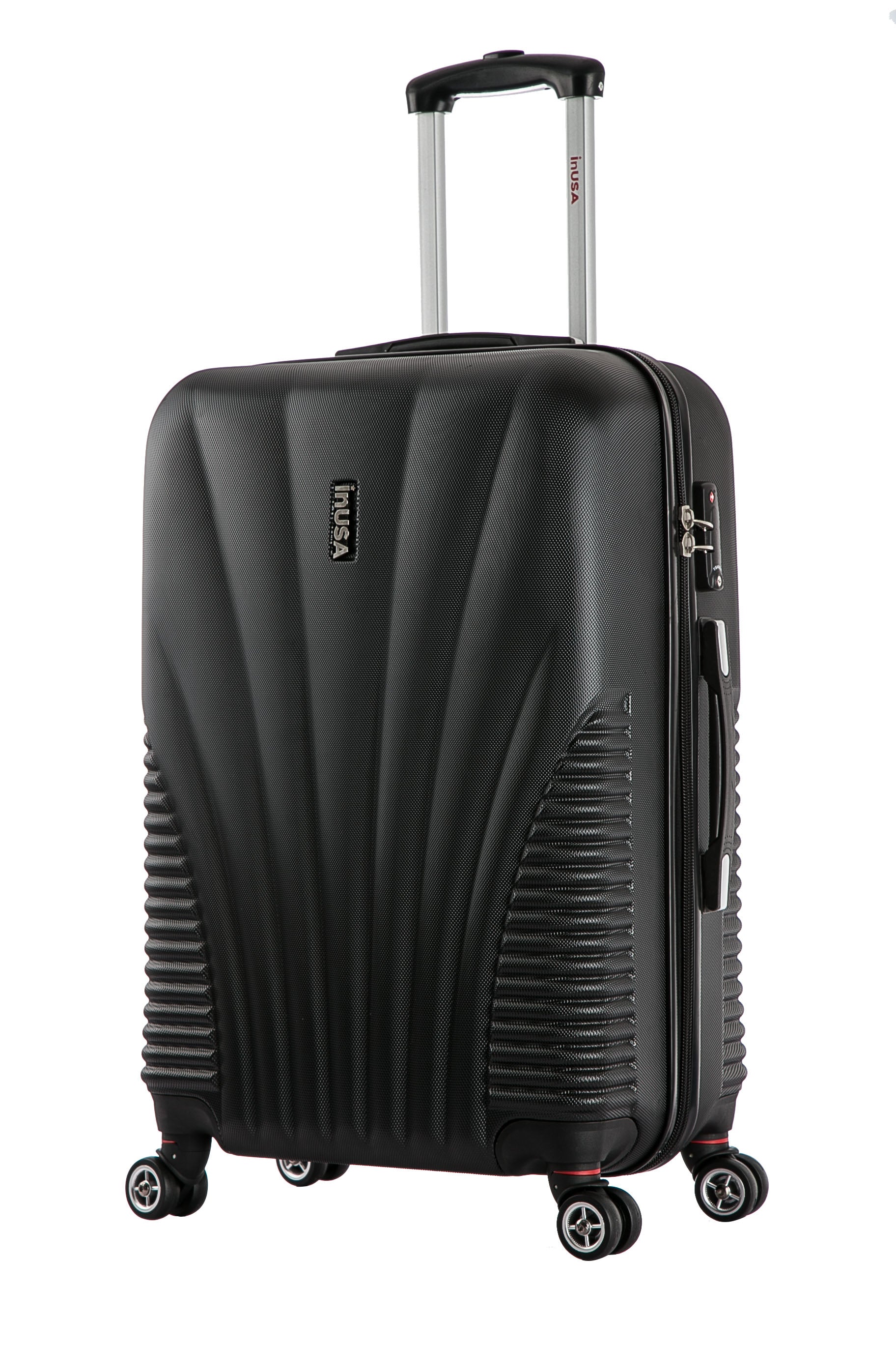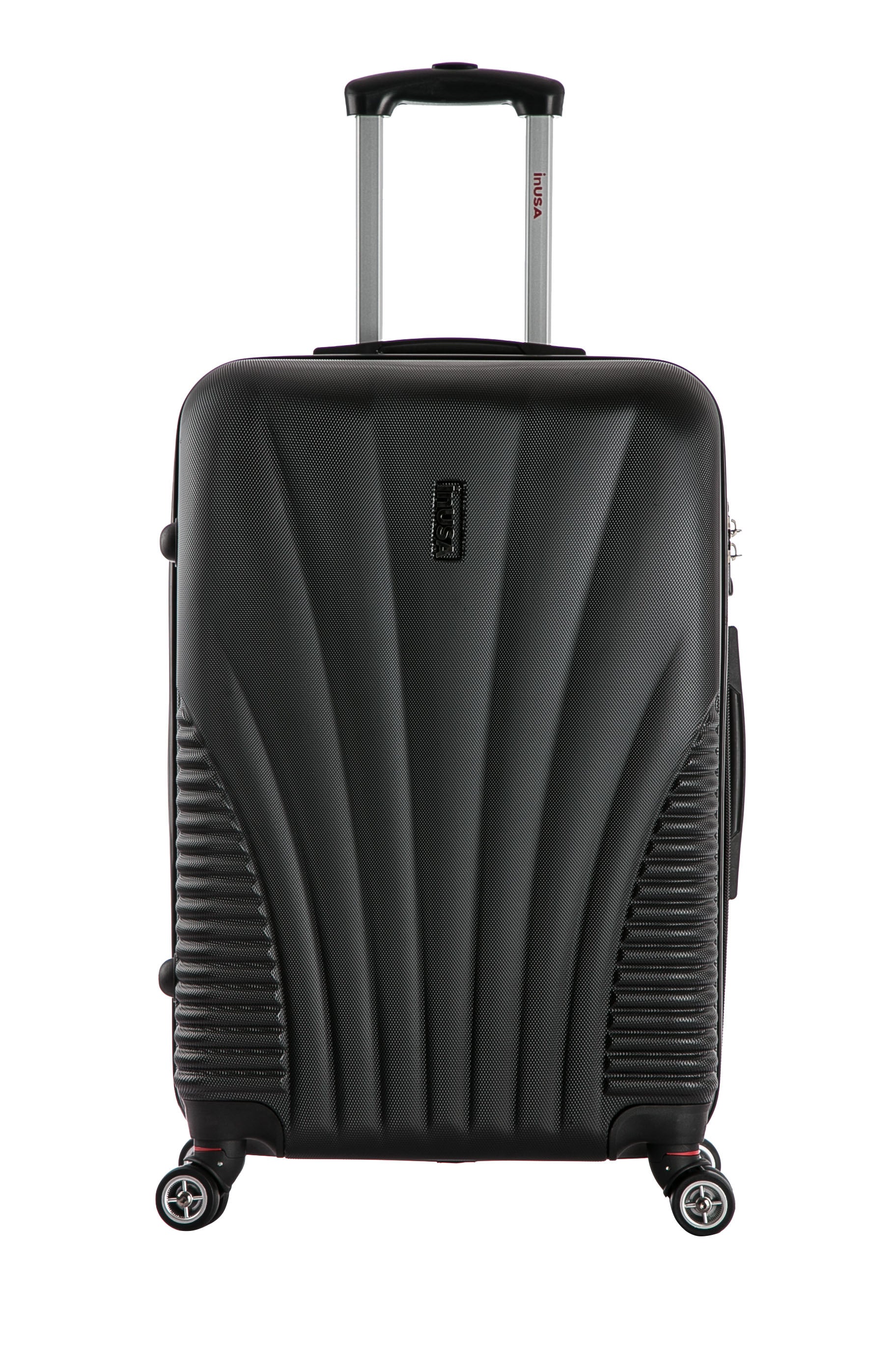 The InUSA Chicago collection is proudly assembled in the USA from imported parts using lightweight ABS/PC engineered material with micro diamond finish. Functional style with 4 airplane design dual spinner multi-directional silent 360 degree wheels for effortless mobility. The sturdy construction offers maximum strength, durability and a water/scratch resistant finish. Full interior fabric lining with a zippered compartment on one side, opposite side offers elastic tie-down straps for additional support and an inside pocket. A side mounted 3 digit TSA approved combination lock, push button locking internal retractable trolley system. The small size offers a Top ergonomic GEL handle. The medium and large size offers Top and Side ergonomic GEL handles for comfortable and easy lifting. Smooth running quality oversized number 10 Zipper. Four side studs allows each piece to stand upright on its side. The expandable feature allows for an additional 25% extra space offered in the Large size piece. This product can be purchased in different colors.
