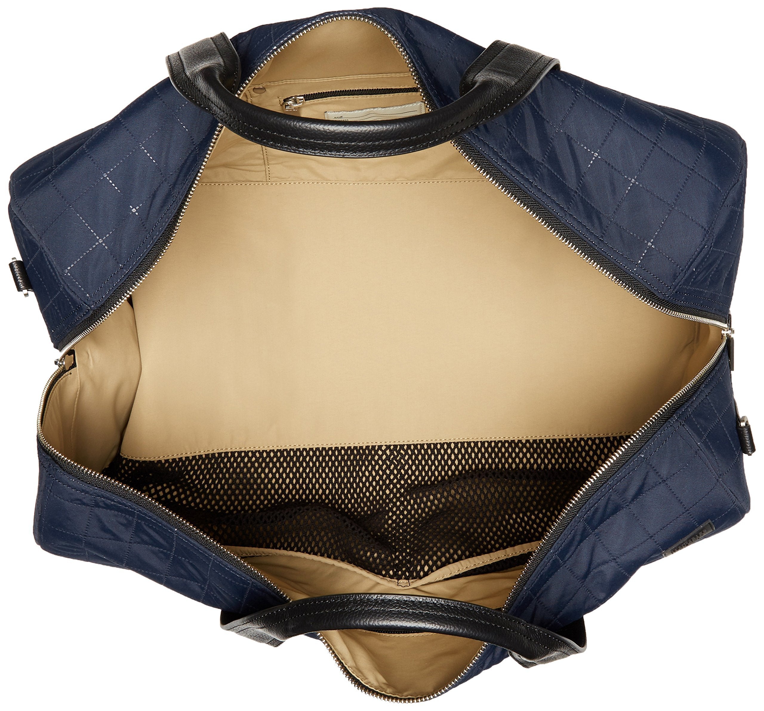 Perfect gym duffle on the go. Classic silhouette with a modern twist. Featuresnylon interior lining and organizational pockets with a removable strap