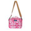 Fully insulated / padded lunch box, cross body adjustable and detachable shoulder strap, fixed hand strap with padded grip, main compartment with zip closure, interior mesh zip pocket.