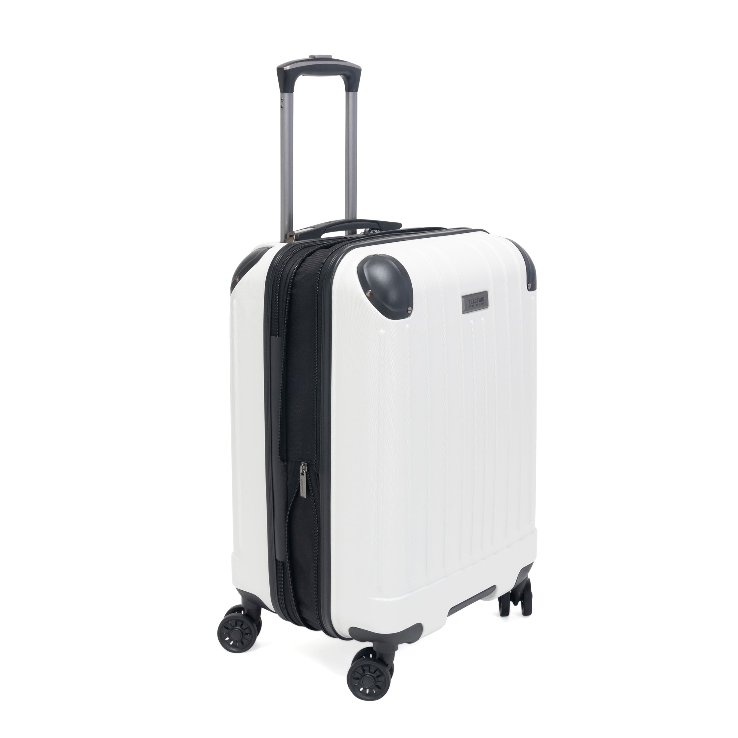 Kenneth Cole Reaction Flying Axis is the perfect hard side luggage when you find yourself on the go. This luggage features 8-wheel spinners that rotate 360 degrees and a telescoping trolley handle for easy mobility. With top and base grab handles, your luggage is easy to grab from any angle. Side handles and molded side feet on the 24-inch and 28- inch luggage sizes allow them to stand on their side easily during your trip. The fully lined interior has a large mesh zipper panel and clothing compression straps keeping your belongings in place. Two inches of built-in expansion allow you to maximize your packing. In addition, the hard shell keeps your belongings safe and your luggage light, finished with molded corner guards for that extra bit of protection. Overall dimensions: 22" H x 14.5'' W x 9.5-11.5'' D. Internal dimensions: 20'' H x 13.5'' x 9-11" D. Weight: 7 lbs. Backed by a manufacturers lifetime limited warranty.