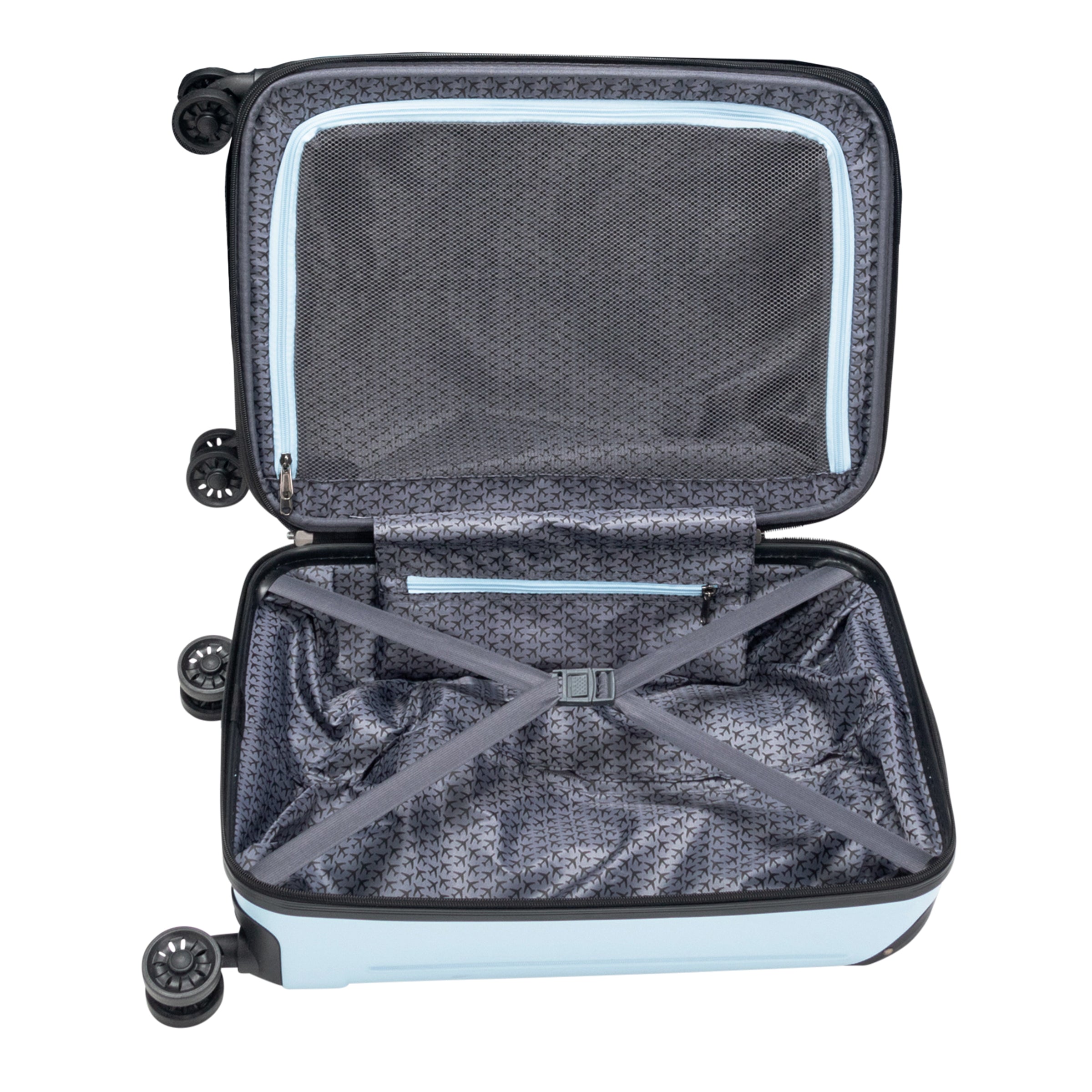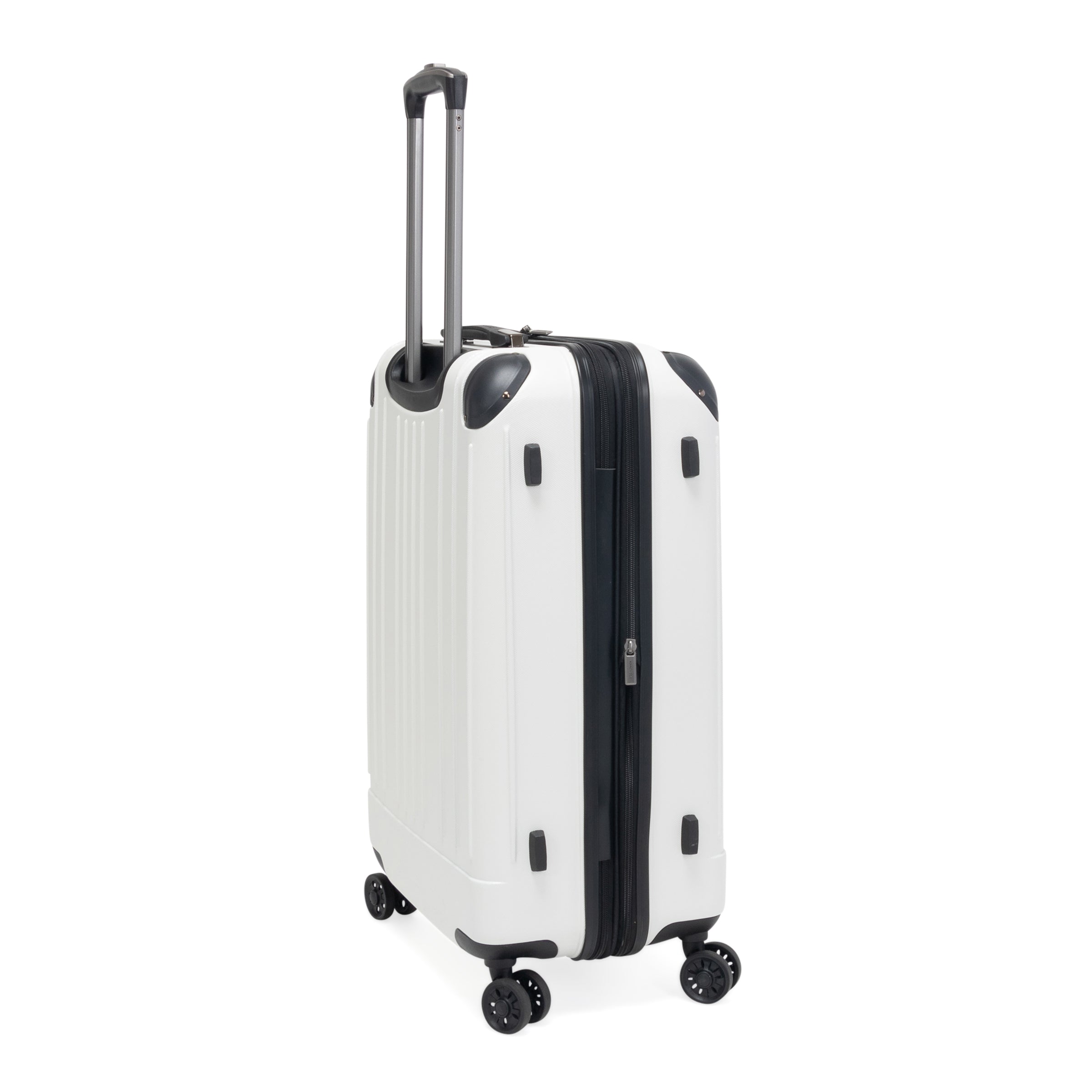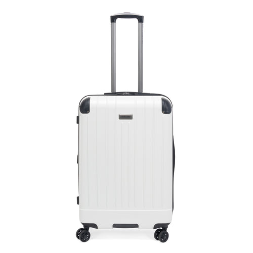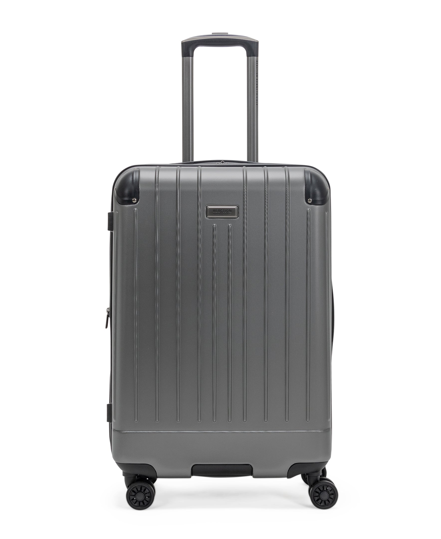 Kenneth Cole Reaction Flying Axis is the perfect hard side luggage when you find yourself on the go. This luggage features 8-wheel spinners that rotate 360 degrees and a telescoping trolley handle for easy mobility. With top and base grab handles, your luggage is easy to grab from any angle. Side handles and molded side feet on the 24-inch and 28- inch luggage sizes allow them to stand on their side easily during your trip. The fully lined interior has a large mesh zipper panel and clothing compression straps keeping your belongings in place. Two inches of built-in expansion allow you to maximize your packing. In addition, the hard shell keeps your belongings safe and your luggage light, finished with molded corner guards for that extra bit of protection. Overall dimensions: 25.5" H x 17.5'' W x 11-13'' D. Internal dimensions: 24'' H x 16.5'' x 10.5-12.5" D. Weight: 9.1 lbs. Backed by a manufacturers lifetime limited warranty.