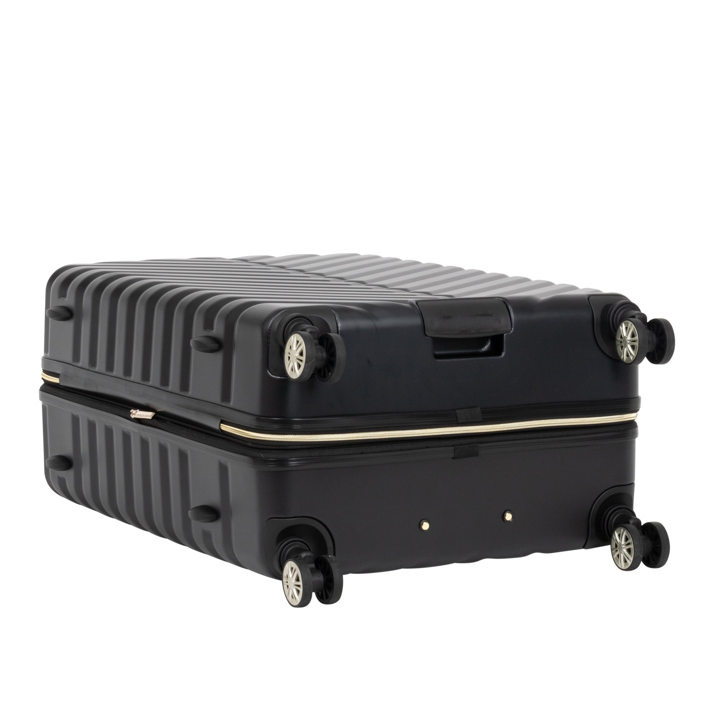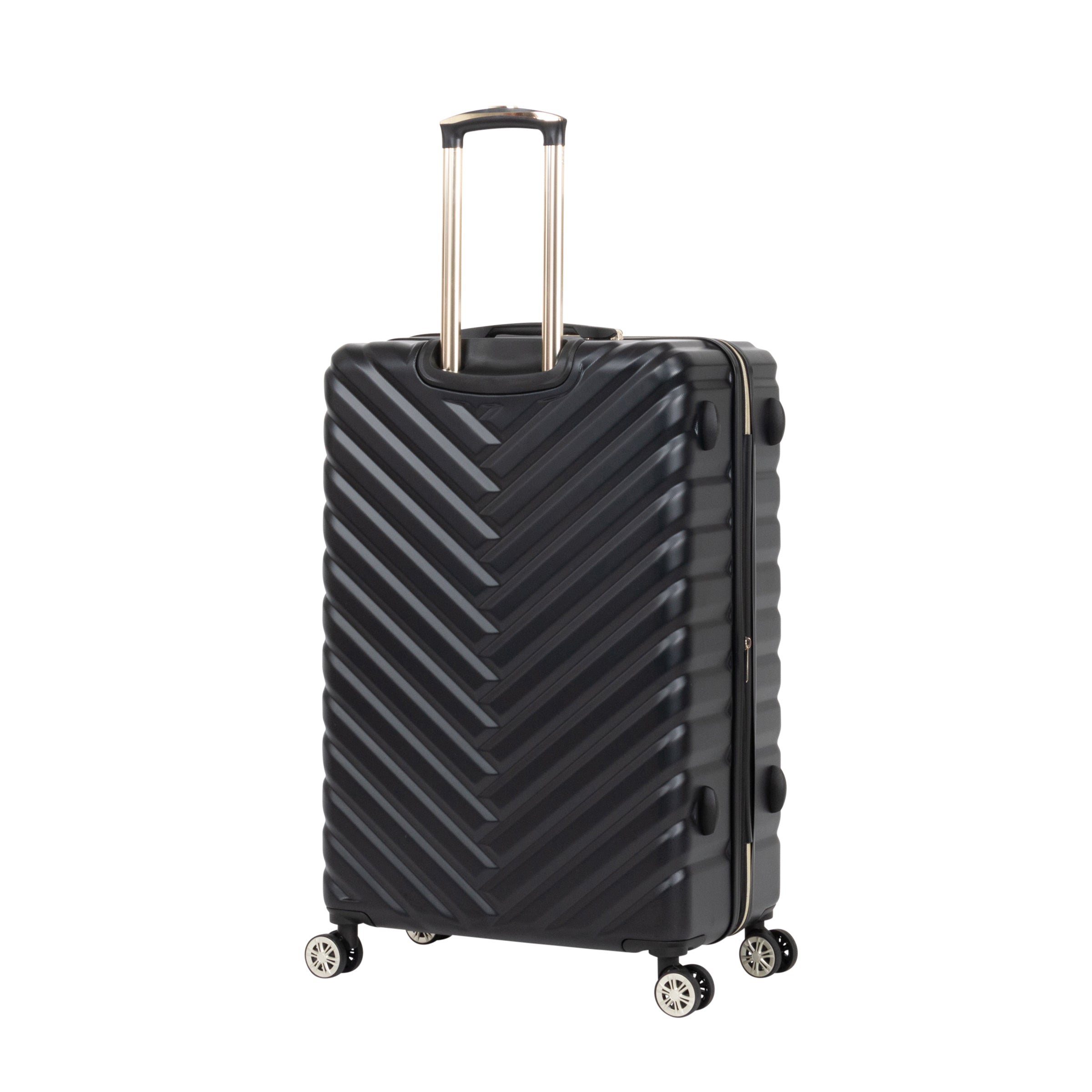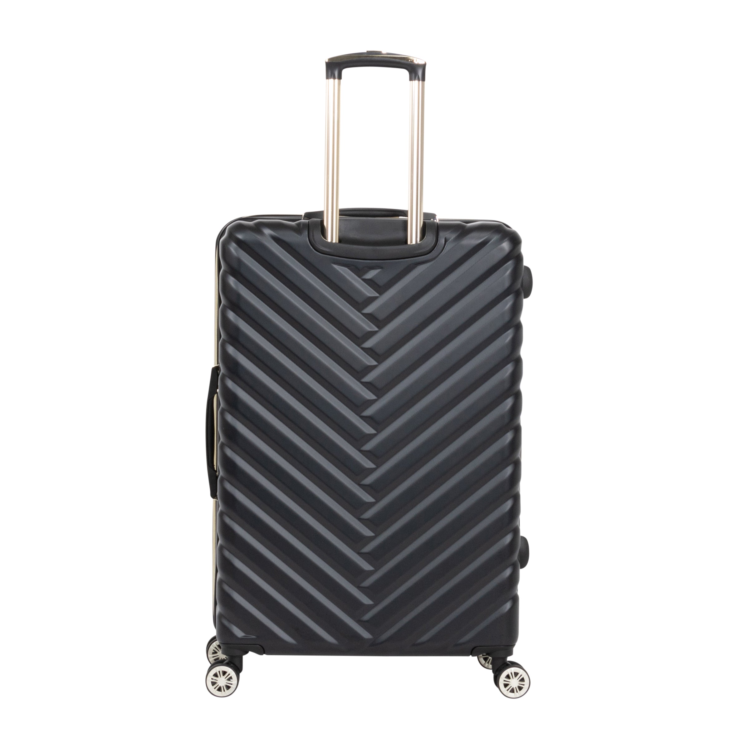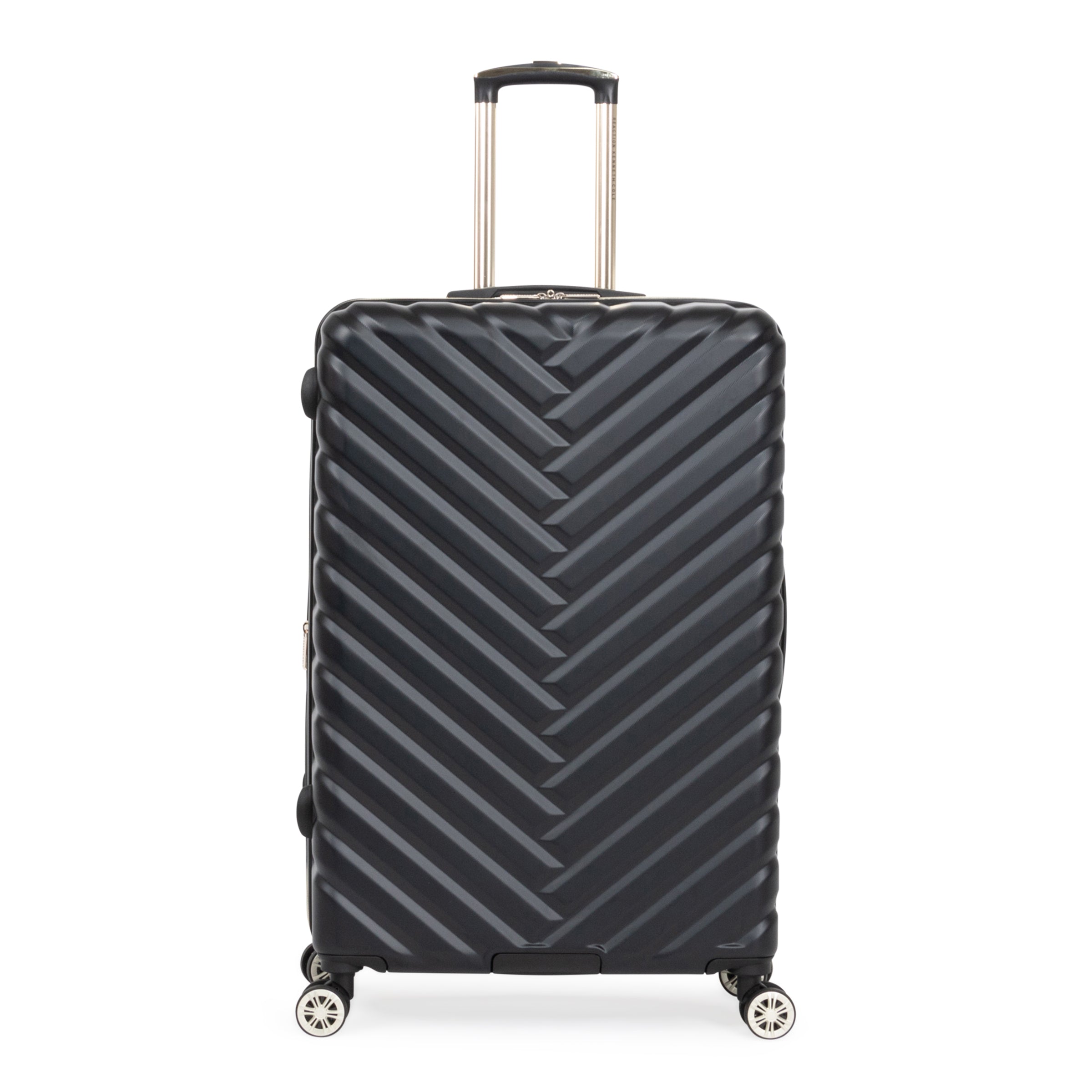 With its chic chevron pattern, the Madison Square luggage collection is fashion-forward and functional, ready to take off at a moments notice with all your valuable belongings safely stored inside. The durable, textured ABS exterior and fully lined, tear-resistant interior ensure that your things are protected, and the luggages expansion feature even allows the bag to expand an additional 2.0 inches for greater carrying capacity. Smooth, 8-wheel spinners provide effortless 360-degree navigation, allowing you to get to where youre going faster, while its lightweight construction helps you meet airline weight restrictions, avoiding unnecessary airport fees. The main compartment interior features a hanging side zipper pocket, and a divider panel with a zippered mesh pocket and clips to hold belongings in place. The under-the-lid section features a divider panel consisting of shoe pockets and a zippered mesh pocket for smaller items. A retractable trolley handle retracts to be 41 inches tall with a locking push button mechanism, while additional flexible top and bottom grab handles allow for easier lifting. The bags premium, self-repairing zippers are designed for long-lasting use, and side handle and molded side feet on the 28 inches allow luggage to stand upright on its side. 28 Luggage Overall Dimensions: 31 H x 21 L x 13-15 D (includes wheels). 28 Luggage Internal Dimensions: 28 H x 20 L x 13-15 D. 28 Luggage Weight: 10.25 lbs. Backed by a manufacturer lifetime limited guarantee against workmanship and defects