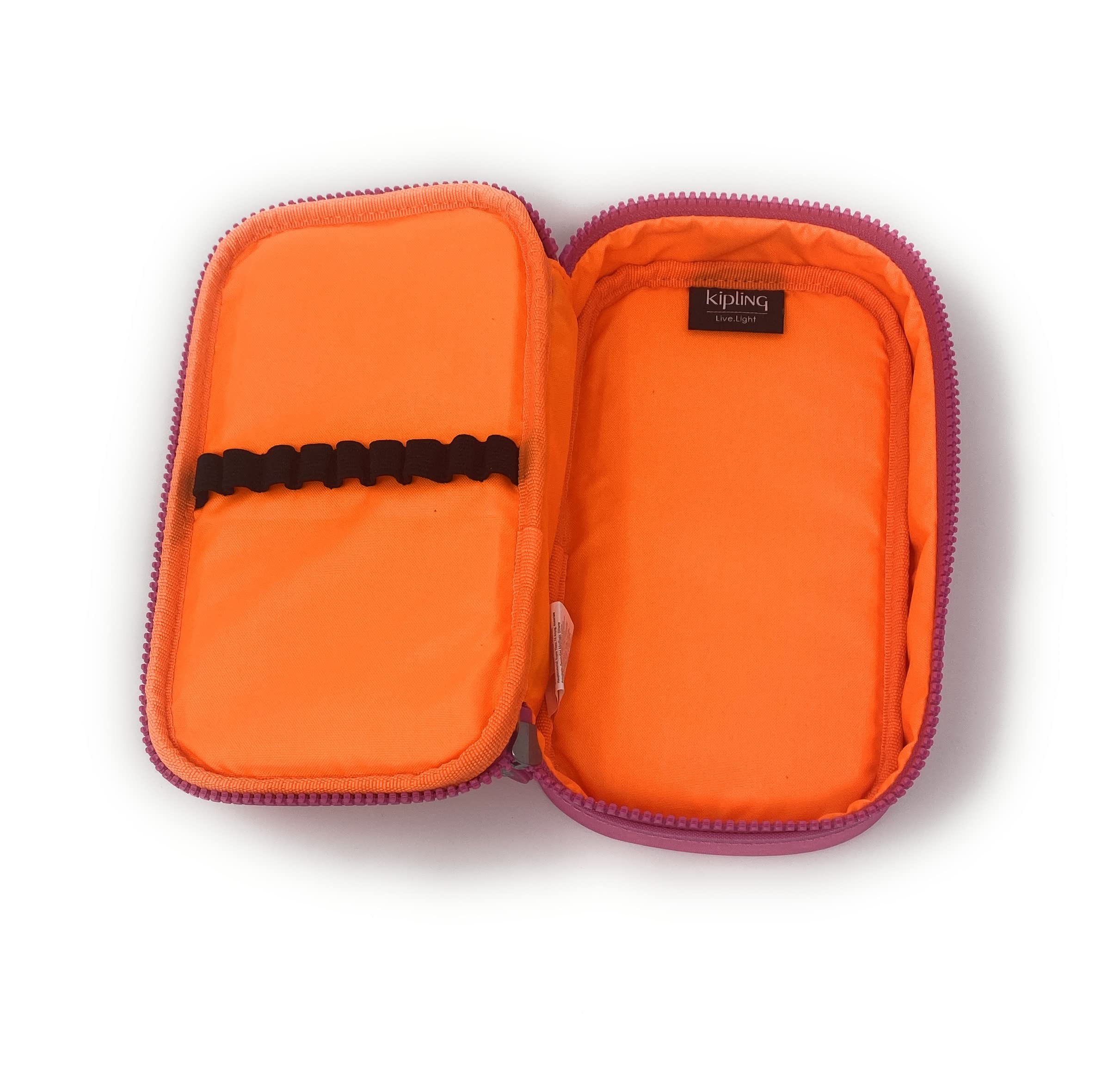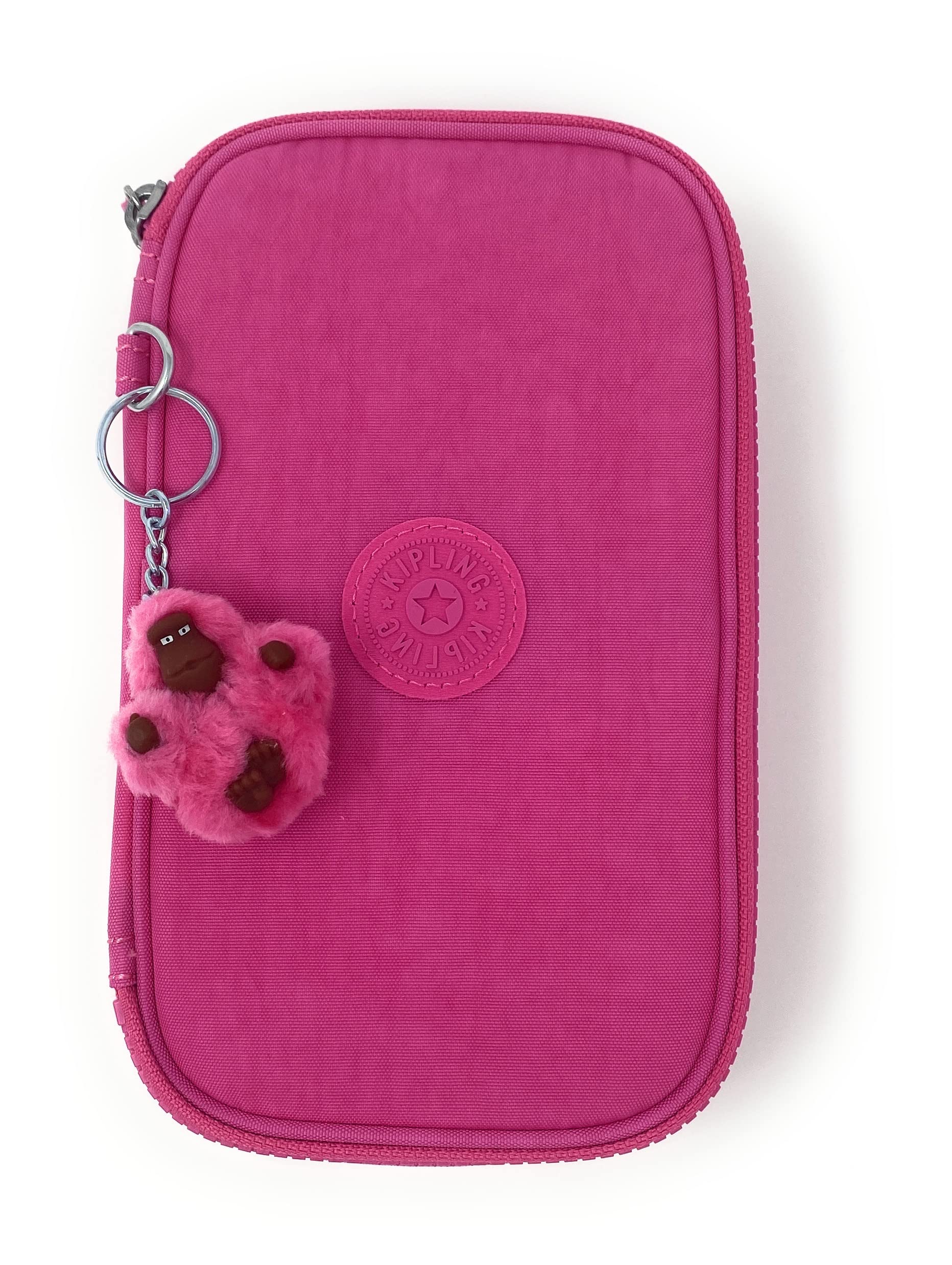 • KIPLING PENCIL CASE: Keep your pens & pencil organized with this fully zip-around pencil case, at school or on the road. The center divider holes 12 pens or pencils, the top panel holds 14. A furry monkey keychain adds to this pencil case's fun & style.