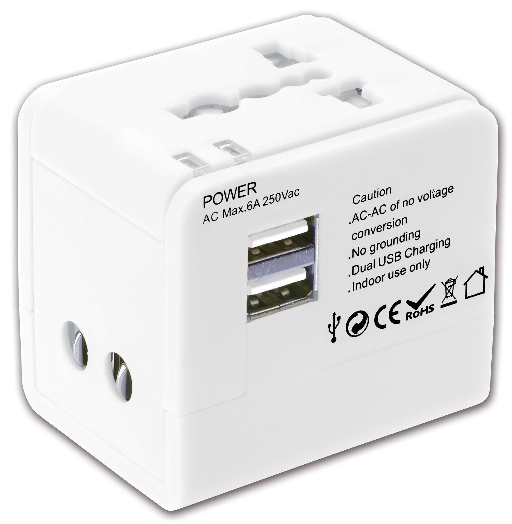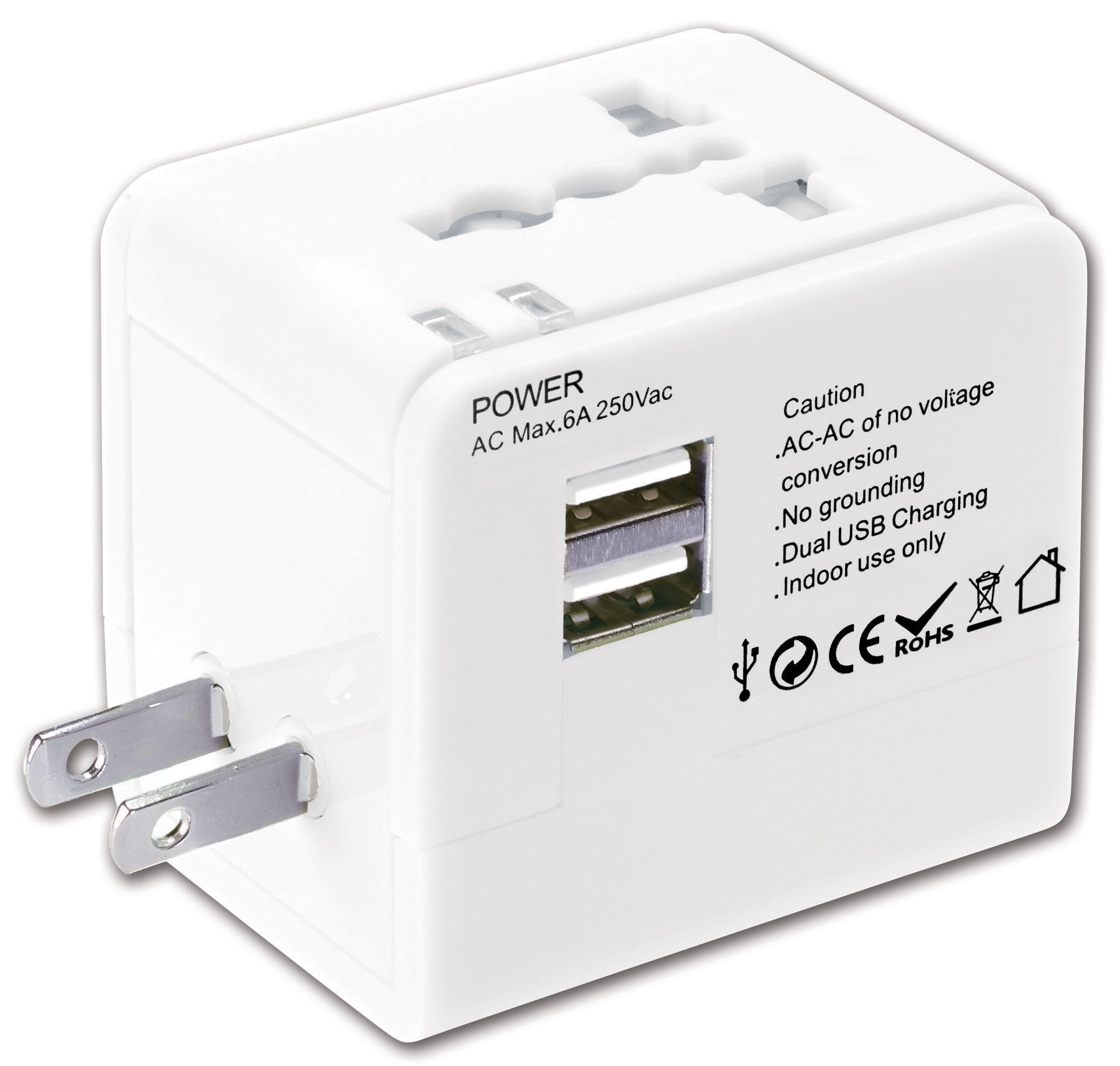 Compact all-in-1 unit includes the four most common global plug configurationsand a type a usb charger to eliminate the need for carrying multiple adapters.Built-in surge protection with surge and voltage indicator lights.
