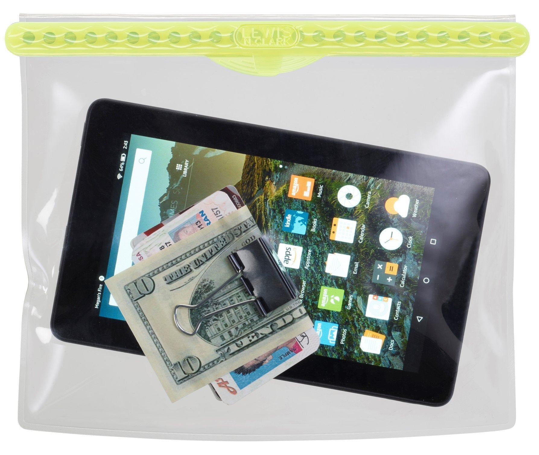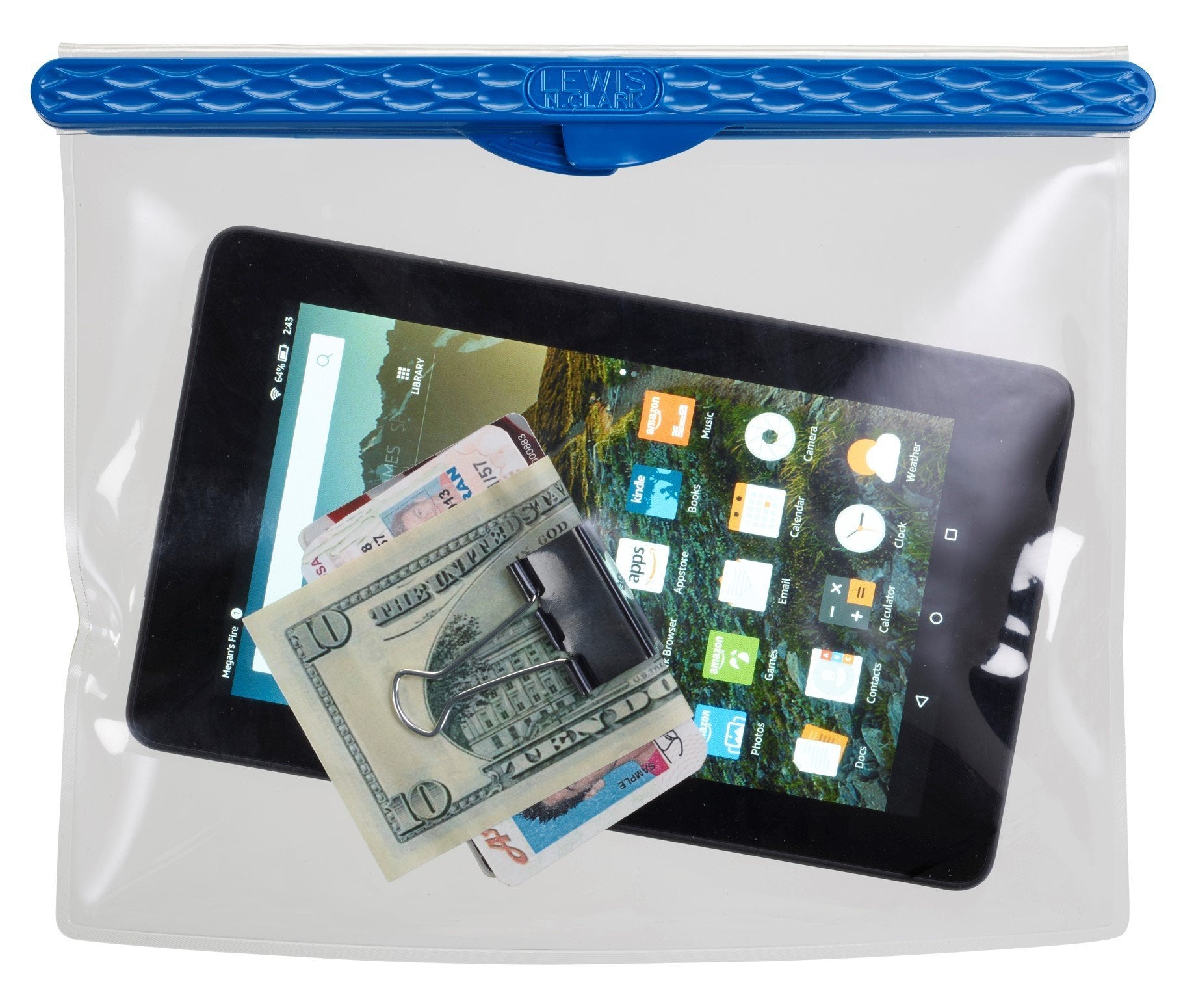 If youve ever wished you could bring your phone to the beach, on a boatingtrip, or even while snorkeling, this magnetic waterproof phablet pouch nowgives you that option. Foolproof and fumble-free, the double magnetic closureautomatically seals with an audible œsnap for watertight protection. You canuse your phone as if the pouch wasnt even there, so you can still listen tomusic, play a game, and watch a video without the need for a headphone oraudio jack. The transparent TPU material also allows you to take crystal clearpictures and videos, even when youre underwater. You can also put other smallitems inside, such as credit cards, keys, travel documents, money, memorycards, or other electronics such as MP3 players or cameras. Waterproof up to100+ feet, the pouch is perfect for all kinds of water sports, includingkayaking, canoeing, sailing, boating, surfing, stand up paddle boarding,snorkeling, swimming, and scuba diving. Its also great at the pool, beach,campground, waterpark, and on cruises. It can be used in wintertimerecreational activities such as skiing, snowboarding, or snowshoeing. Even ifits just a rainy or snowy day, this waterproof pouch will keep yourbelongings dry. Not only does it keep moisture out of the pouch, but it alsokeeps particles such as sand and dust out as well. The lanyard is adjustableand can be worn around your neck or wrist or attached to an object. Offeringeasy access to your belongings so you dont have to leave them behind in thecar or unattended on the beach, this durable waterproof phablet pouch keepstouchpads completely usable and protects your valuables from water and debris.Use and Care Before attempting to submerge electronics underwater, read themanufacturer's recommendations regarding depth limits to make sure that thedevice can withstand the water pressure. Always keep the inner part of themagnetic sealing apparatus clean and void of any dirt or other foreign objects After use in salt water, rinse with fresh water Avoid exposure totemperatures higher than 140 F