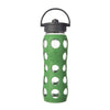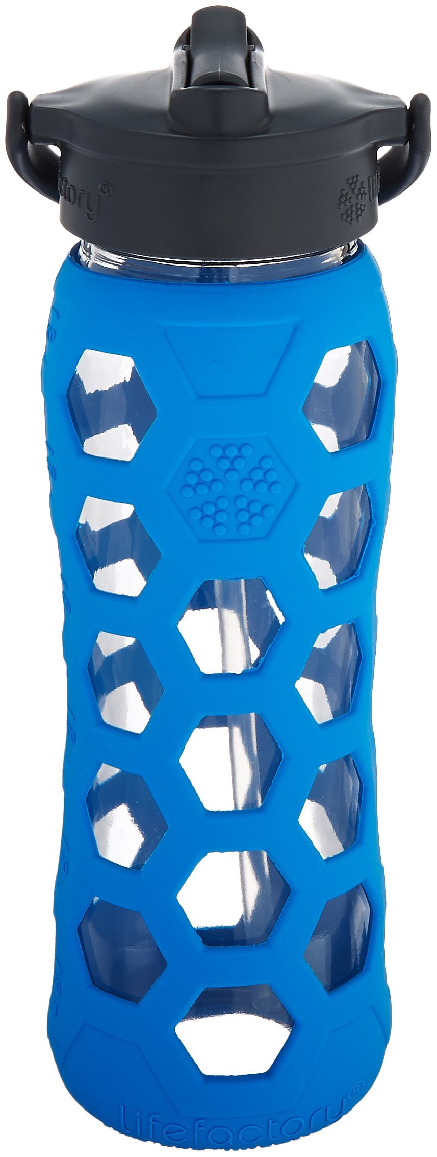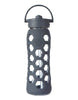 Lifefactory 22-ounce (650 ml) reusable glass water bottles offer a large capacity to quench a big thirst while providing an excellent alternative to disposable plastic bottles. These innovative bottles feature durable glass construction that offers pure taste. The bottle’s glass is surrounded in a patented silicone sleeve that both protects against breakage and provides a comfortable, non-slip surface. The bottle also features a wide-mouth opening making it easy to fill with ice cubes, pieces of fruit, or drink mixes and powders. Meanwhile, the bottle’s Flip Cap is perfect for use on the go. The medical grade, silicone flip top opens up and offers a controlled flow. The flip top seals when plugged but is not leakproof, so please keep this bottle upright! The Flip Cap has a handy pivoting handle that makes it easy to carry the bottle and that stows out of the way while drinking. For easy care, the silicone sleeve and bottle can be washed together. All components of the bottle are dishwasher safe. It is recommended to wash the cap on the top rack. The cap is constructed of BPA/BPS-free polypropylene (PP#5) with no phthalates, PVC, or polycarbonates. The flip top is made of durable BPA/BPS-free silicone. All Lifefactory components are made in the USA or Europe and all products are assembled in the USA.