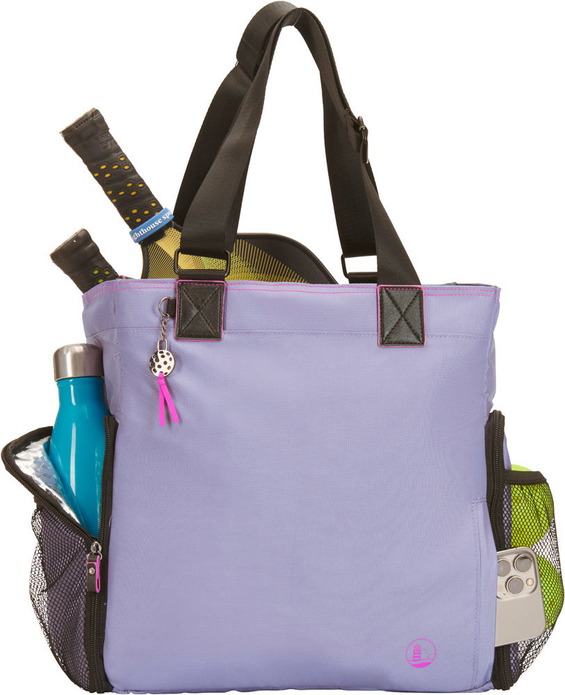 Our personalizable Gasparilla Pickleball Tote is a carefully crafted bag of durable, water-resistant nylon, and designed to be versatile and functional. Sized for the Pickleball, Tennis and Paddle (Platform Tennis). To shop for personalized totes, please select Gasparilla Tote - Personalized. Holds up to three paddles in rear pocket with handle strap to snap in place. Front pocket with zippered cover holds all the accessories you will need on court- towels, jacket, sunscreen, hats, gloves, extra balls. Mesh pockets for water bottle and balls. Adjustable shoulder straps. Hidden pockets for phone and keys. Insulated pocket for drinks and phone. Felt-lined pocket for jewelry, sunglasses and valuables.