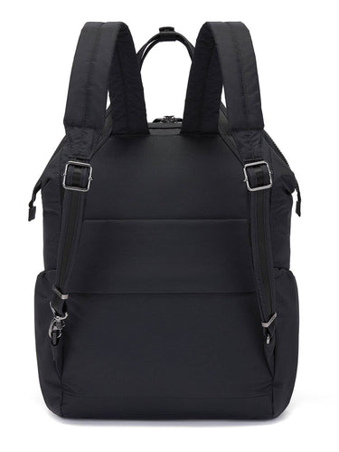 Our popular commuter backpack design in a more compact size. This ultra slim profile allows for easy movements through busy areas such as subway, city, and airports. This bag is the perfect companion for city dwellers and considered commuters. The 11L capacity of this anti-theft backpack holds more than you think. Fits a 13" laptop and tablet in separate soft padded compartment, and is packed with pockets for organization for all your gadgets, cables, and on-the-go gear. Not only is the bag packed with function, it’s packed full of Pacsafe security features.