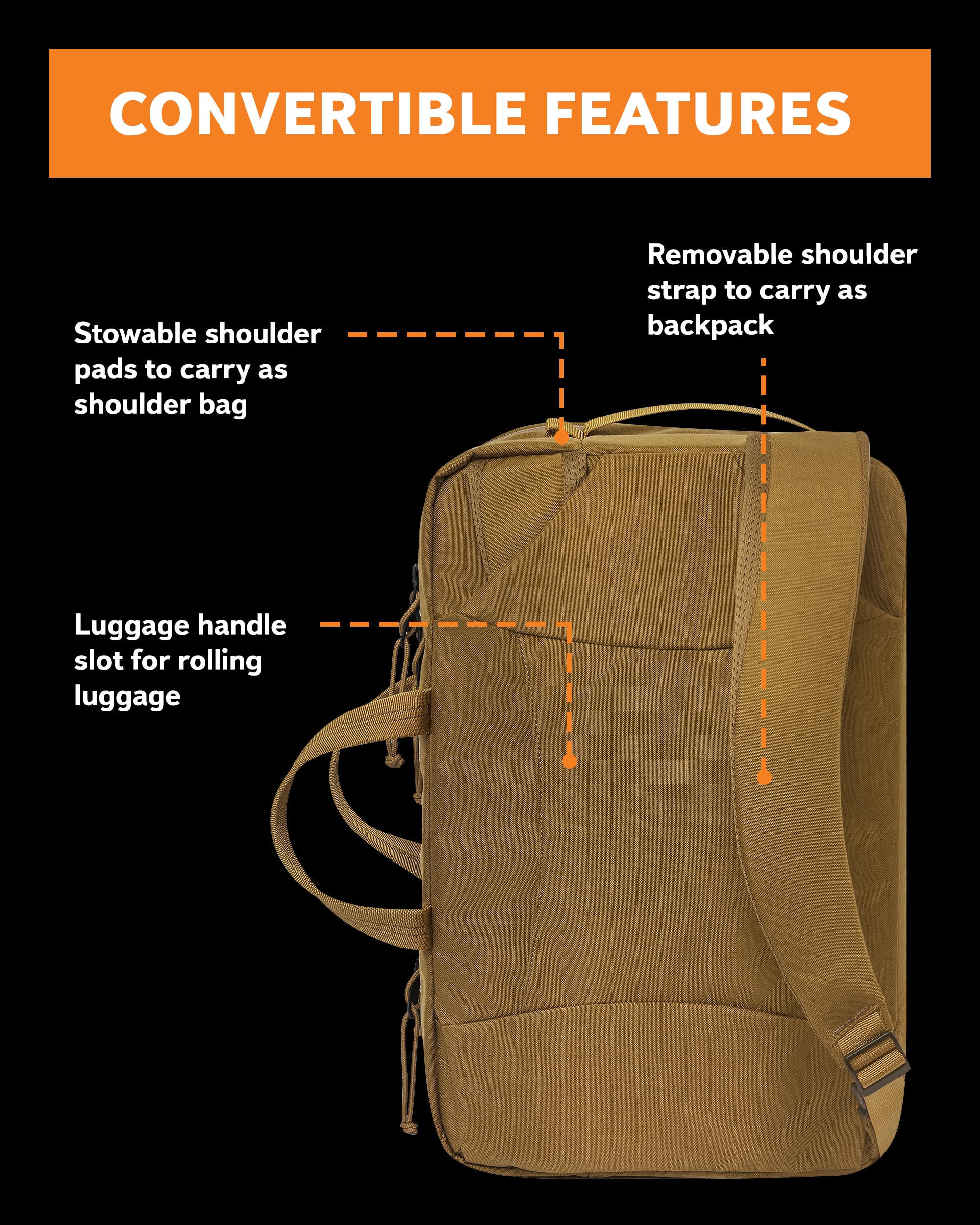 The 3 WAY 27 is more than a briefcase its your portable office, your souped-up carry-on, and your daily companion that holds everything you need to get you through the day. It offers a suite of pockets (including one for a 17 computer) and more space for battery packs, an extra screen, and headphones. The pack is plentiful in organizational options all protected by water-resistant features like YKK coated zippers. Its crafted with durable CORDURA fabric to withstand the demands of even the most rigorous and lengthy commutes, and it does so while caring better for the environment with partially recycled materials.