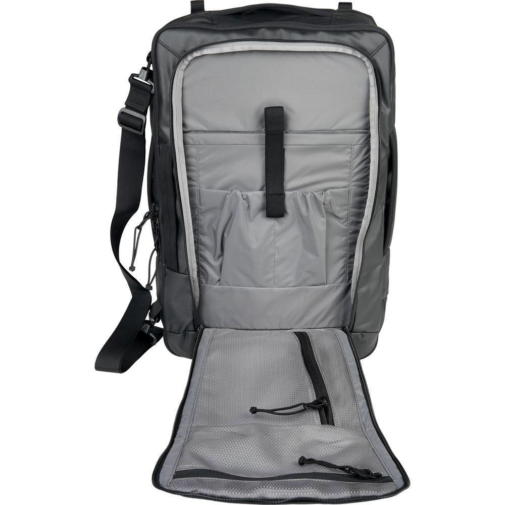 Fully padded to protect delicate devices and accessories, the MISSION CONTROL is a compact bag perfect for organizing your electronics when traveling. Weather-resistant recycled nylon ensures everything stays safe and dry, and webbing grab handles on the top and sides make it easy to pick up and go. Inside the bag, a floating divider pocket and two stretch-woven pockets keep things separated so wires dont get crossed.