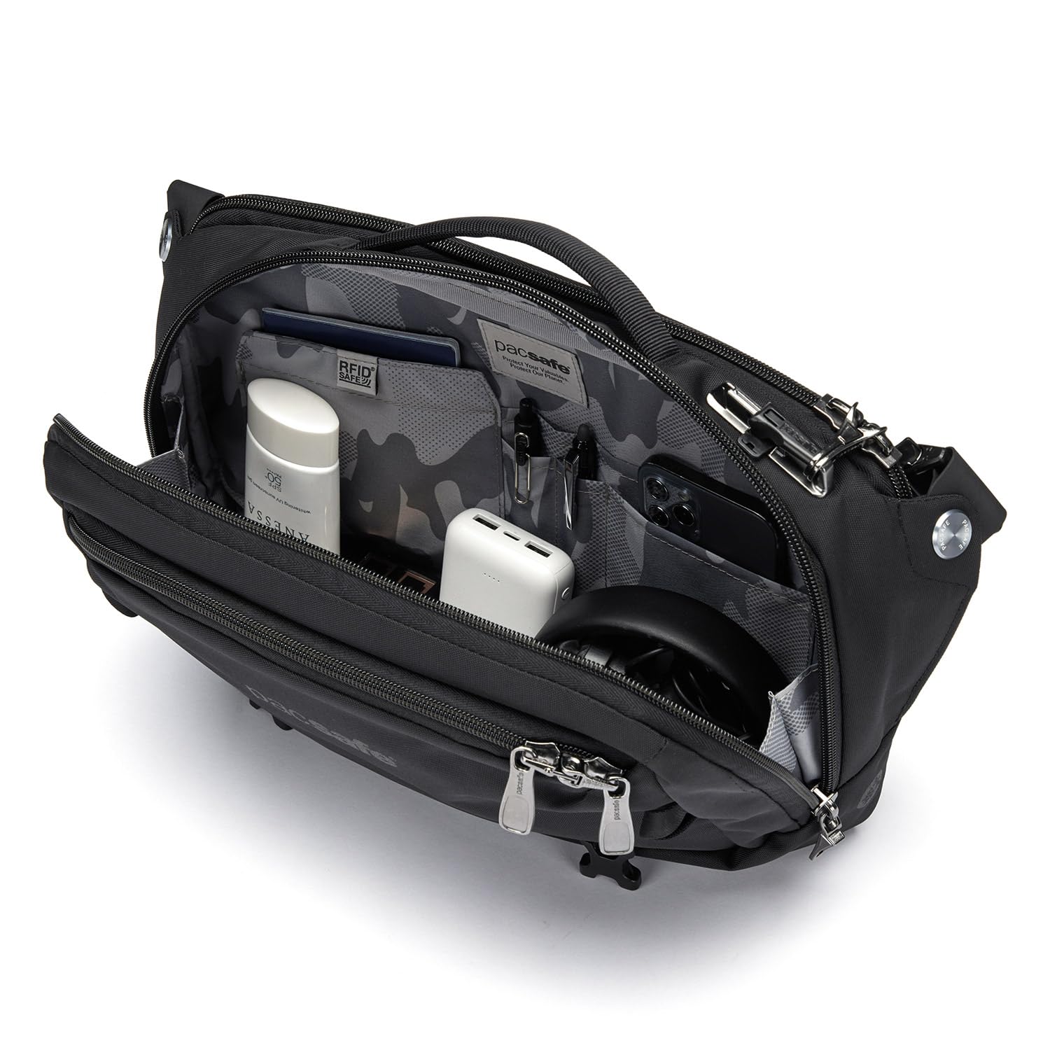 Versatility is a top priority for experienced travelers, which is why this hybrid crossbody seamlessly converts into a convenient sling pack. Rest easy knowing that advanced anti-theft technology is integrated into every aspect of this bag, ensuring the utmost security for your valuable tech and gadgets. With a dedicated compartment at the back that accommodates up to a 13-inch MacBook Pro, you'll have ample storage in the main compartments for all your other travel essentials and gadgets.