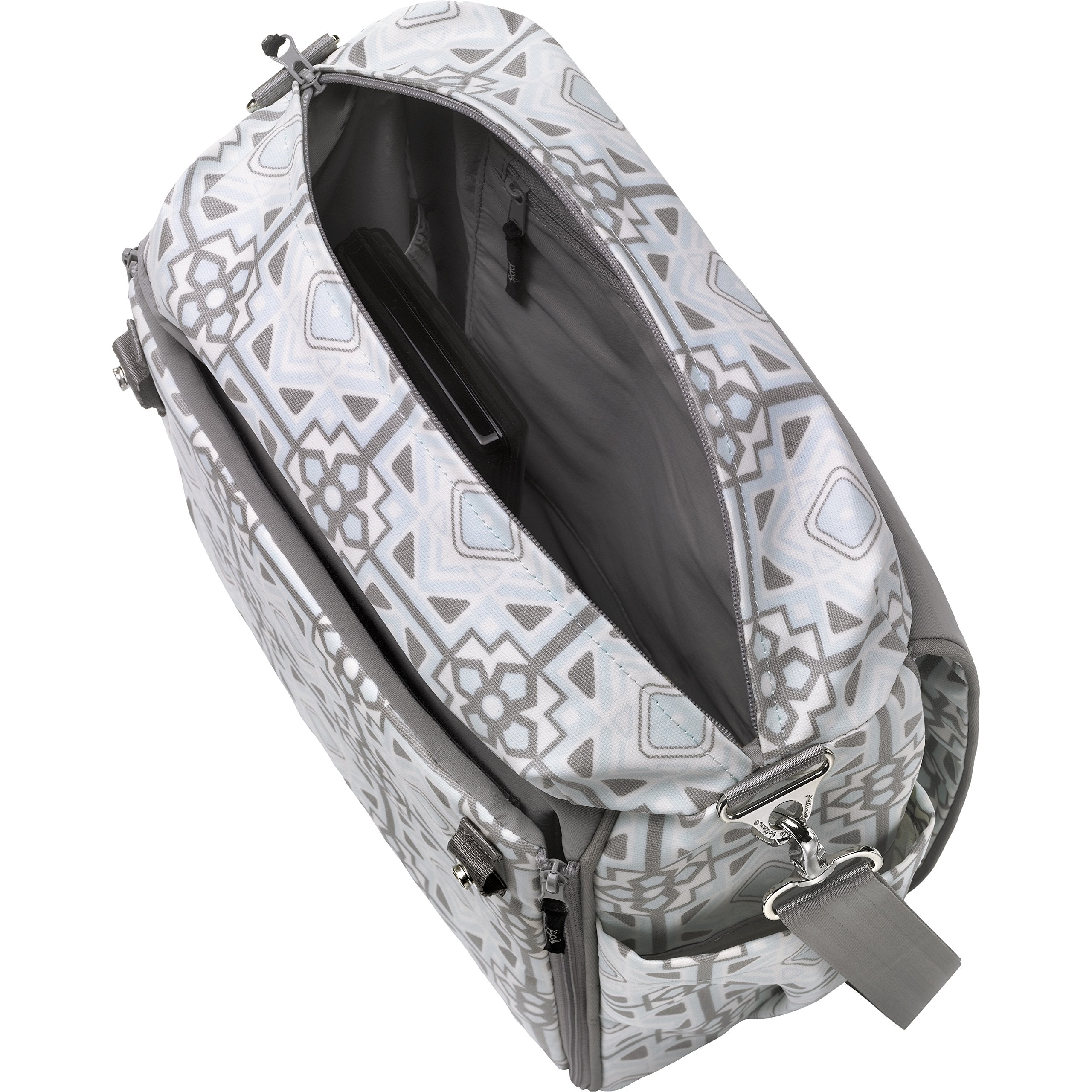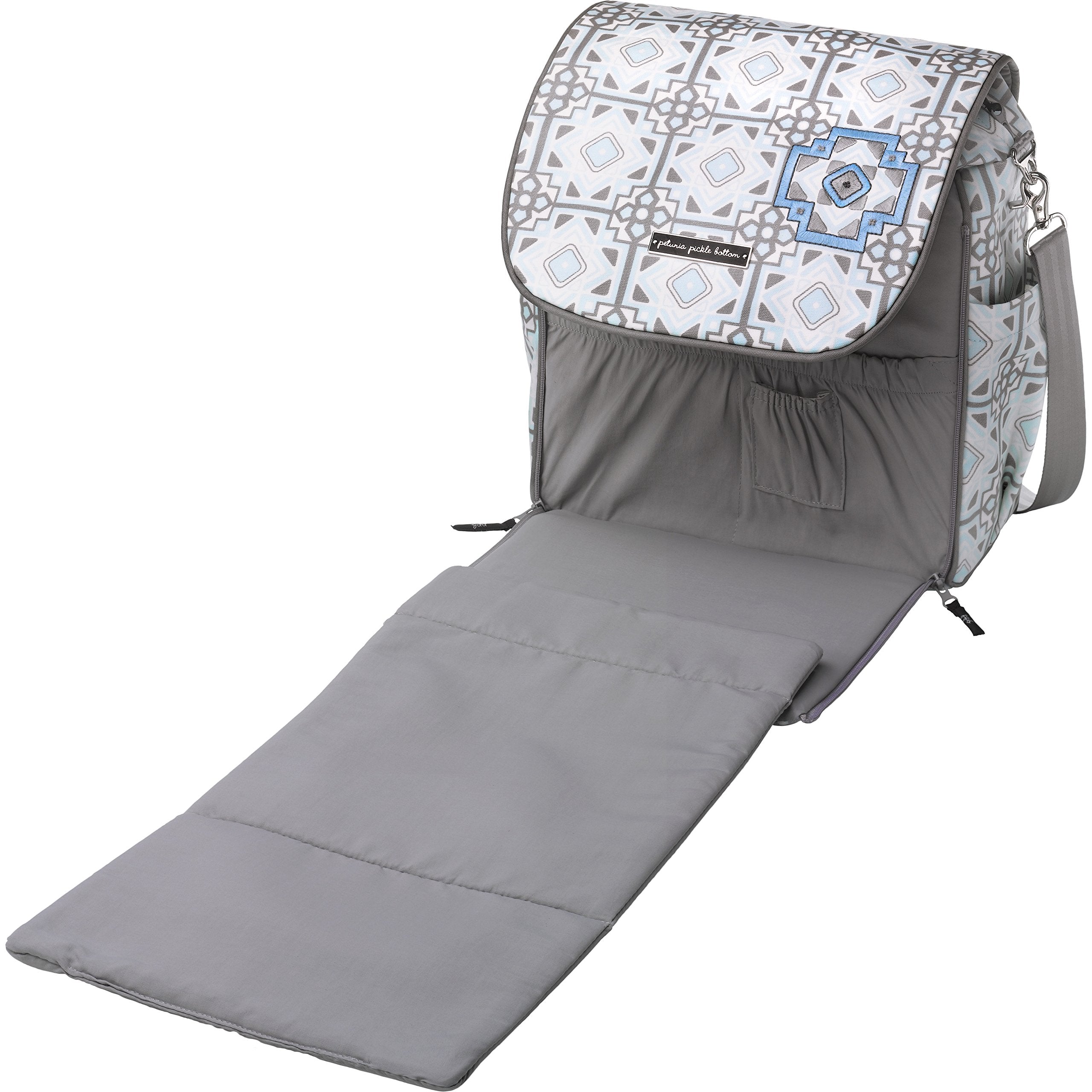 • Zip-out changing station with detachable changing pad, 2 pockets for diapers and wipes and 1 pacifier pouch