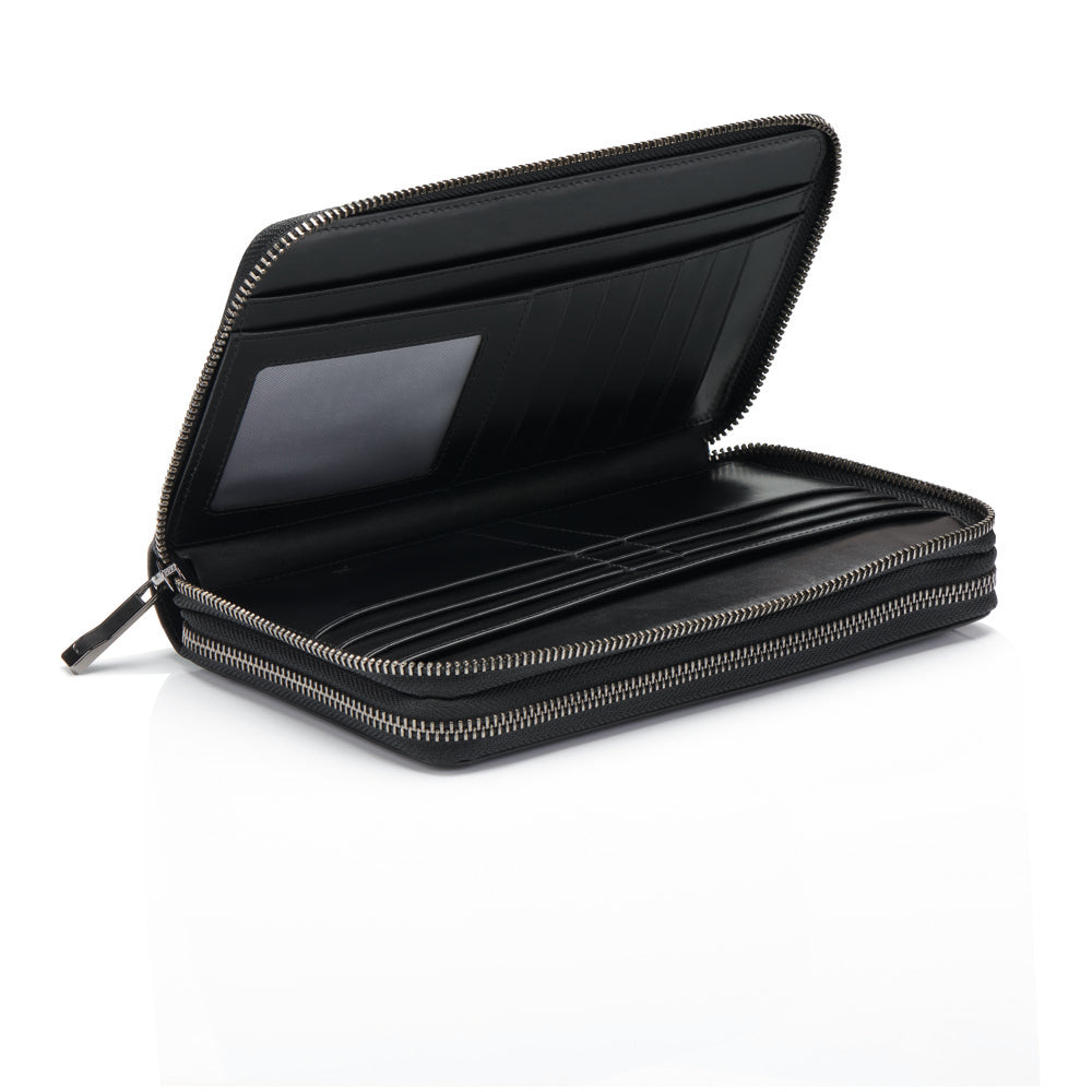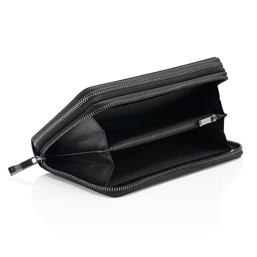types of pockets, compartments and card slots to fit ones individual preference. Whether cash or credit cards, everything can be stored safely in dedicated spaces and is easily accessible. All items are RFID protected and secure any card data from unauthorized access. Some items feature a mesh pocket on the inside, a timesaving feature to store any travelling passes, etc. Inside the accessories the lining with Porsche Design icons and the co-branding logo add further value to the product. The Small Leather Goods Classic Collection is offered in many sizes and a wide range of interior options, with its elegant black smooth leather and the Porsche Design logo plate it sets a modern and luxury statement.