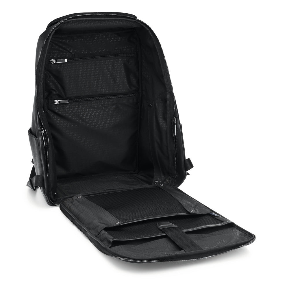 All compartments, expandable pockets and useful side pockets provide the space you need, ideal for all your personal belongings. Backpacks feature useful anti-theft hidden pockets closed with zip, to keep valuables safe but always on hand. Business organizers contain at pockets, pen loops, key hook as well as zip pockets: these details provide easy access to daily essentials. Moreover the back trolley sleeve, adjustable shoulder strap and top handles ensure maximum ease of use. The weekender with its two handles and a detachable shoulder strap can be carried either over the shoulder or elegantly in one hand. Roadster Leather Collection is available in black color. All the hardware is carefully designed and the gunmetal finishing highlights the product. It features bags and backpacks in various shapes and sizes. Each piece is characterized by a unique aesthetic appearance that highlights the nest full grain calfskin.