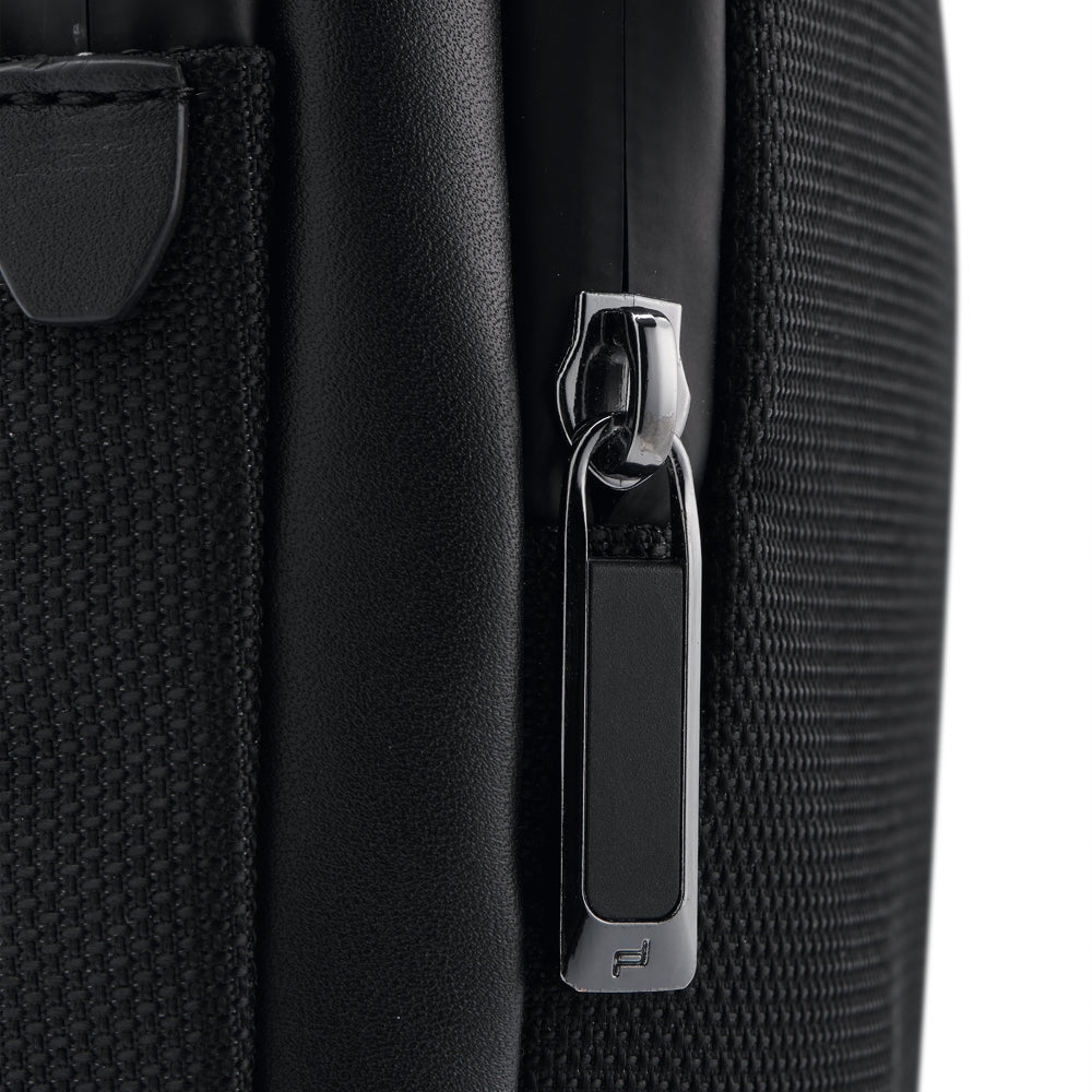 Fulfilling the needs of high demanding professionals, the Roadster Nylon Collection is made from water-repellent textured nylon, with details in smooth leather. Reverse water repellent zips enrich the collection, increasing its technical appeal and adding a clean and modern design. With its high functionality, extremely durable, lightweight material and smart details, this collection is perfect for an everyday dynamic use, both in an urban setting as well as for travelling. Inside, roomy compartments, functional pockets and a business organizer provide ample space and protection for devices and documents. All laptop pockets are padded and secured with kissing sliders. Notebooks fit the laptop compartment perfectly, a must-have for commuters and professionals. Additional zipped compartments provide access and protection to personal belongings. All backpacks feature a useful anti-theft hidden pocket. Directly accessible, the product outside provides a lot of space with zipped front compartments, expandable convenient side pockets. Business organizer features at pockets, pen loops, key hook as well as zip pockets: these details provide easy access to daily essentials. All brief bags and the weekender feature a trolley strap for utmost comfortable use when travelling. With its two handles and the detachable shoulder strap, the bags can be carried either over the shoulder or elegantly in one hand. Roadster Nylon Collection is available in black color. All the gunmetal hardware is a Porsche Design unique design feature. The series features bags and backpacks in various shapes and sizes. Each product has been carefully designed to respond perfectly to all needs, both secure and practical, for business, travel and for daily use. These bags are highly competitive and premium quality.