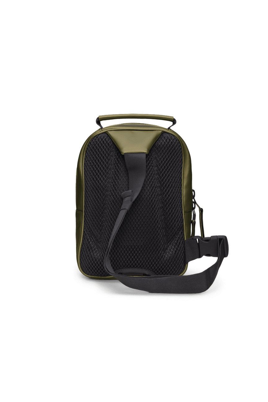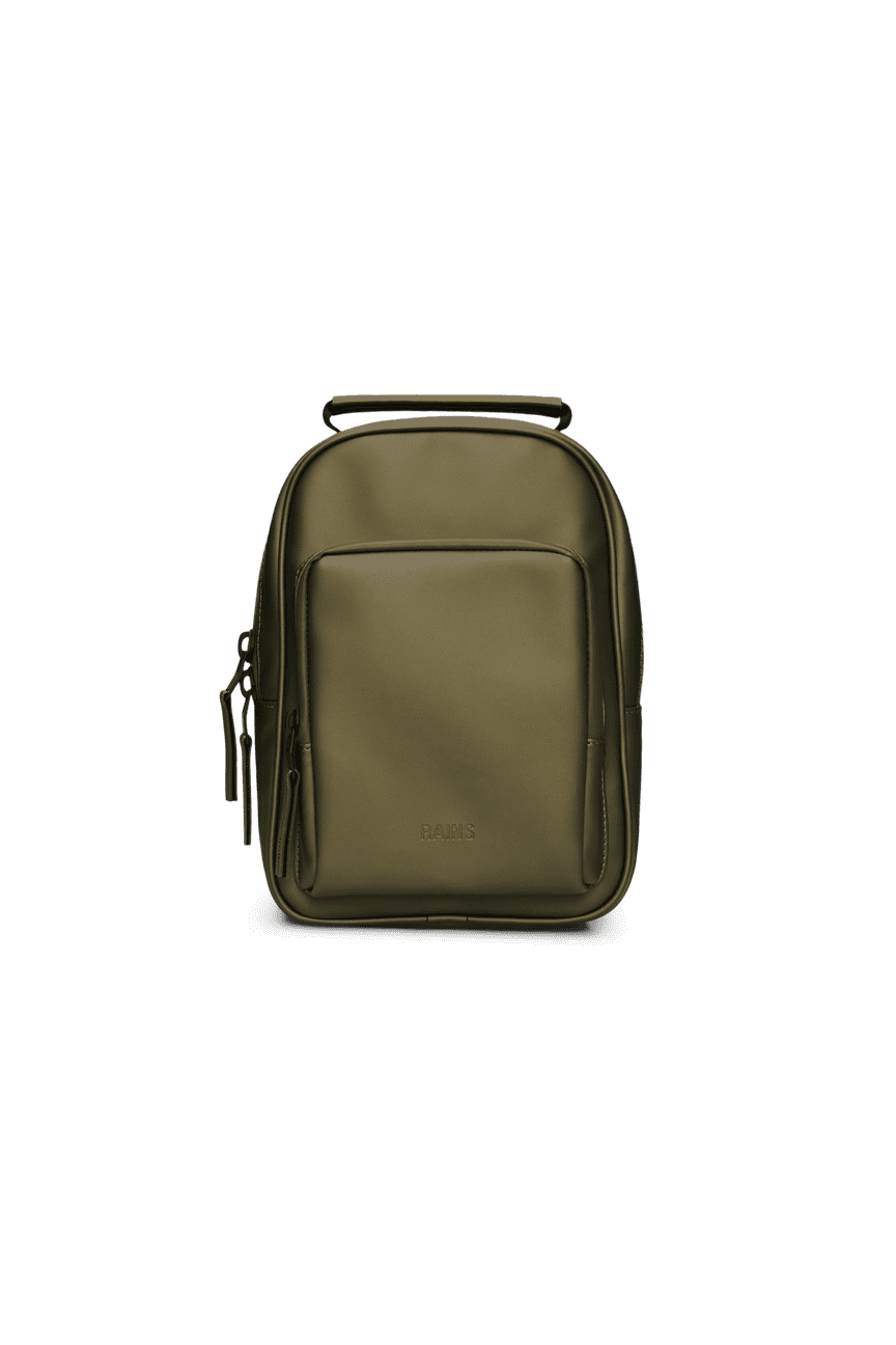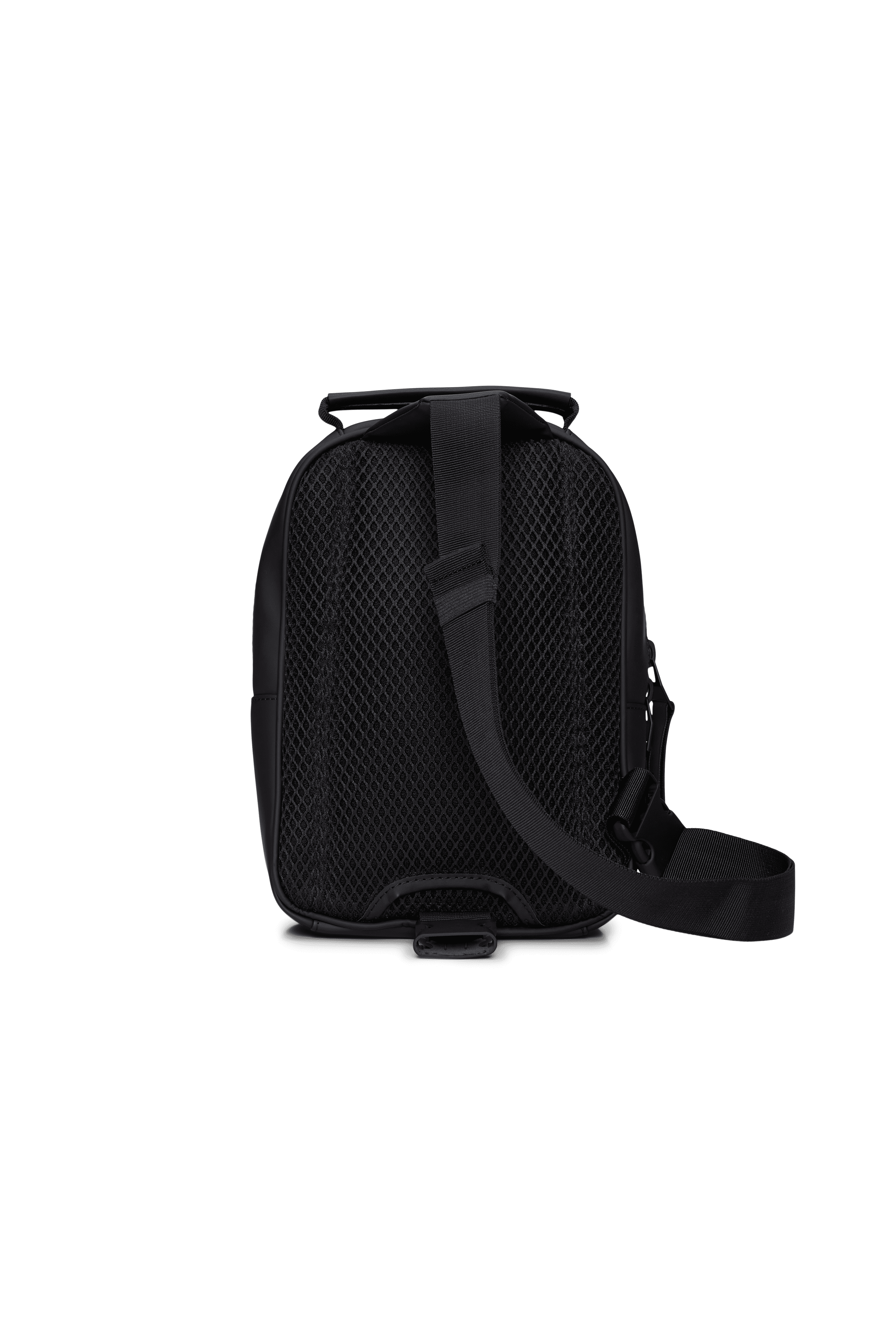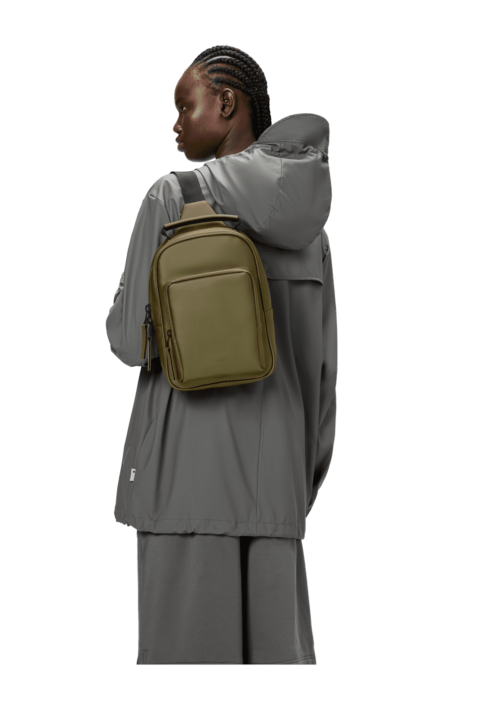 Book Daypack Mini is a compact version of Rains Book Daypack. Wear the monostrap as a sling over the shoulder or as an oversized bum bag. Book Daypack Mini is a clean, compact design characterized by fun, yet technical features that offer multiple uses. Wear it cross body as a sling bag over the shoulder with the adjustable monostrap, or clip it around the waist as an oversized bum bag. Perfectly designed for carrying smaller essentials day to day or when traveling. The design has a curved top, coated zip closures and front zip pocket. Open Book Daypack Mini to reveal a main compartment with an internal slip pocket. This style is finished with a webbing carry handle and padded mesh panels on the back for breathable comfort. Book Daypack Mini is cut from Rains signature waterproof PU fabric, engineered for carrying strength, durability and a smooth feel.