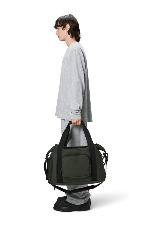 Texel Kit Bag Large is cut from Rains signature waterproof PU fabric, engineered for carrying strength, durability, and a smooth feel.