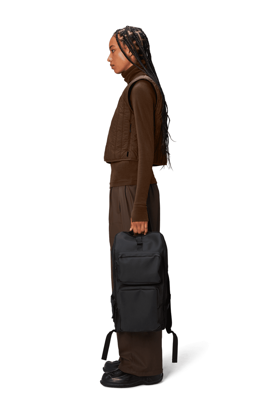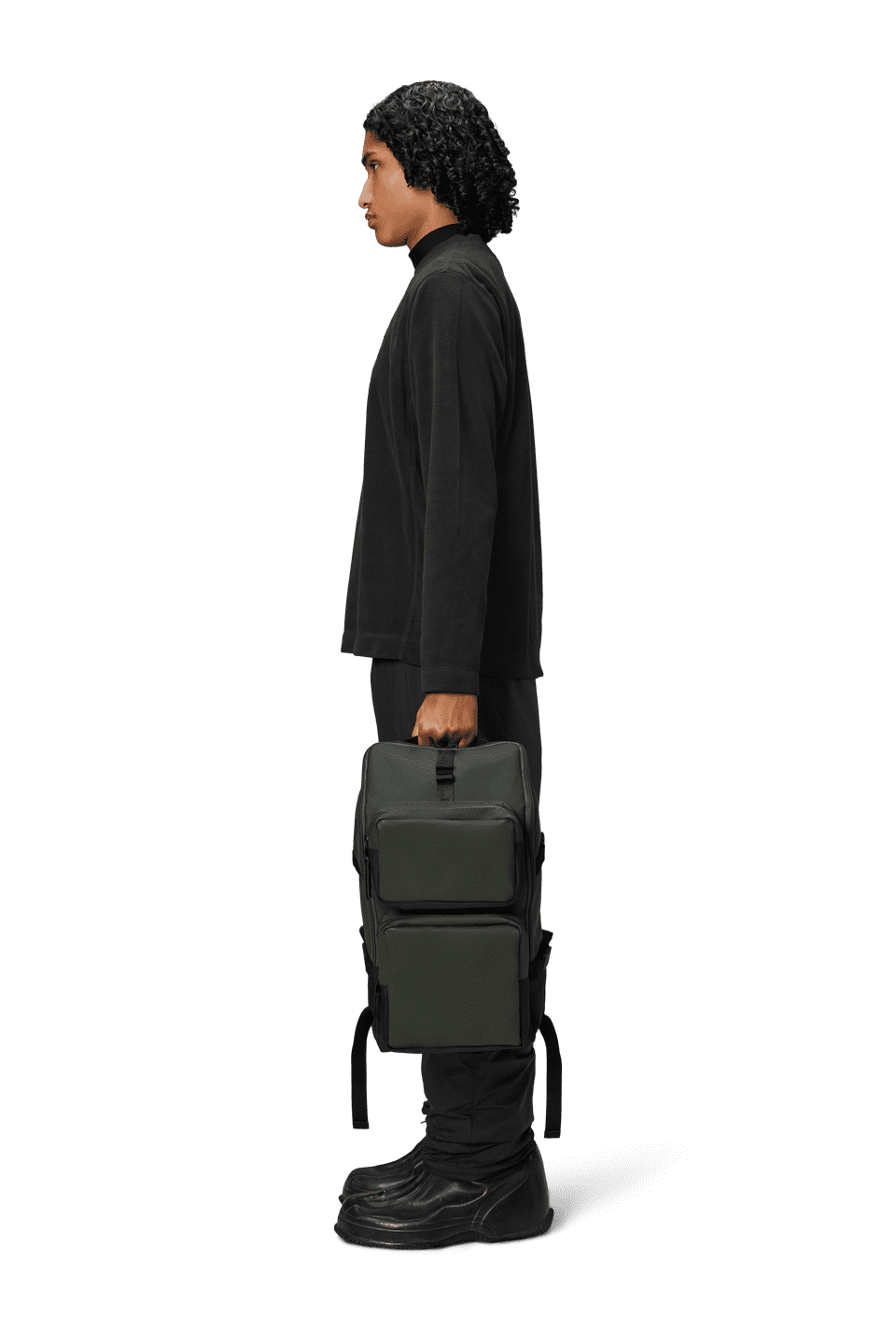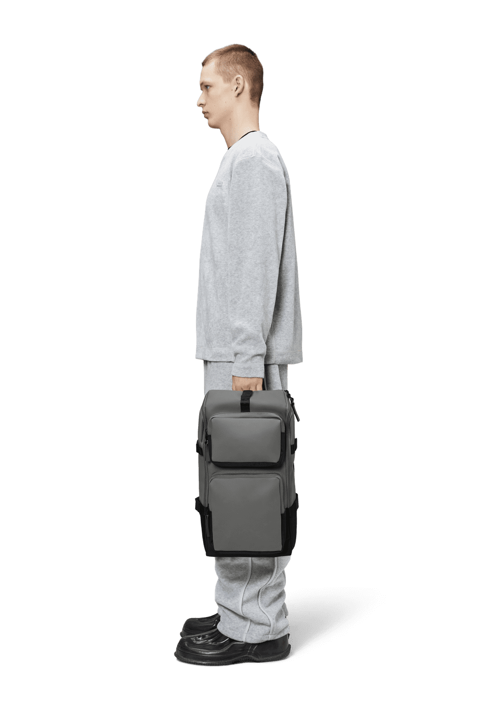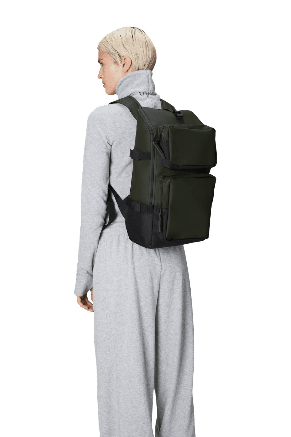 Trail Cargo Backpack is a take on the classic Trail Backpack, offering lots of features, functional details and outside pockets. The Trail Cargo Backpack features an internal laptop pocket, a spacious main compartment and two square front zip pockets, providing plenty of storage space. This design leans into the sports-utility mood of the Trail family. The laptop pocket fits a 15" laptop, making the Trail Cargo Backpack a perfect computer-ready staple. Trail Cargo Backpack is cut from Rains' signature PU fabric, engineered for carrying strength, durability and a smooth feel.