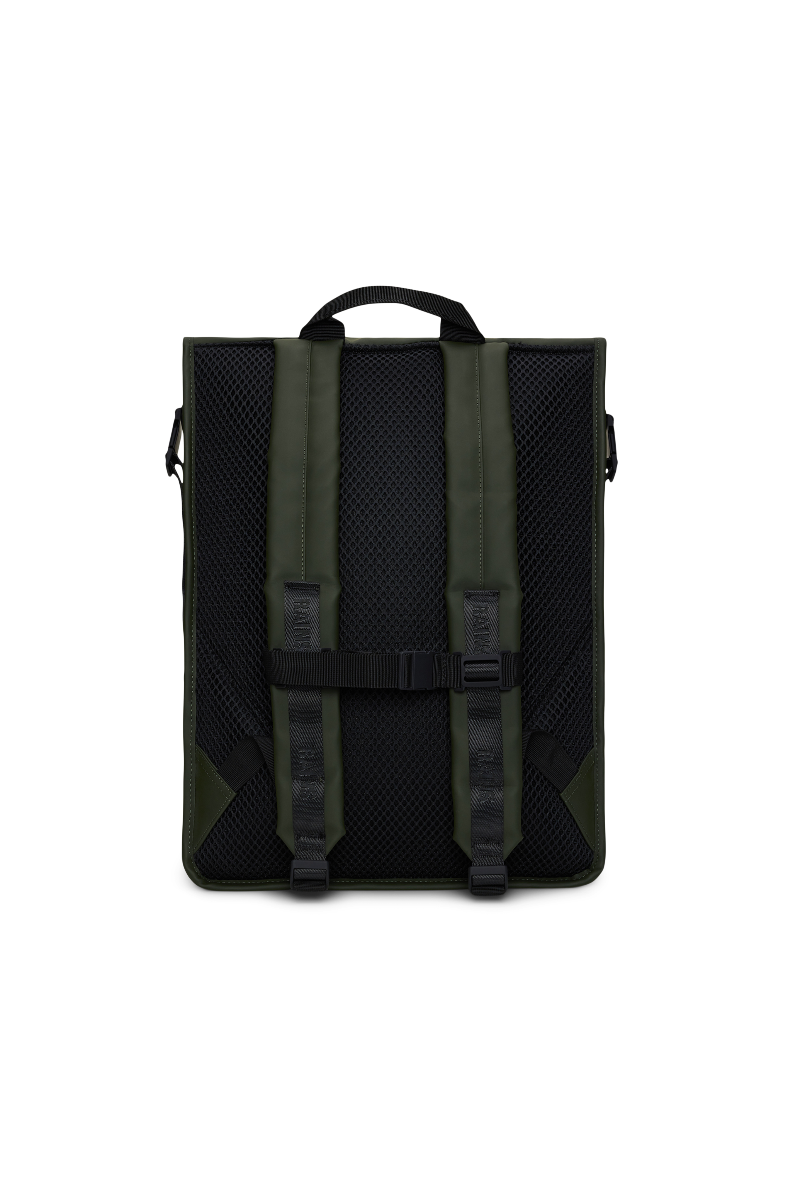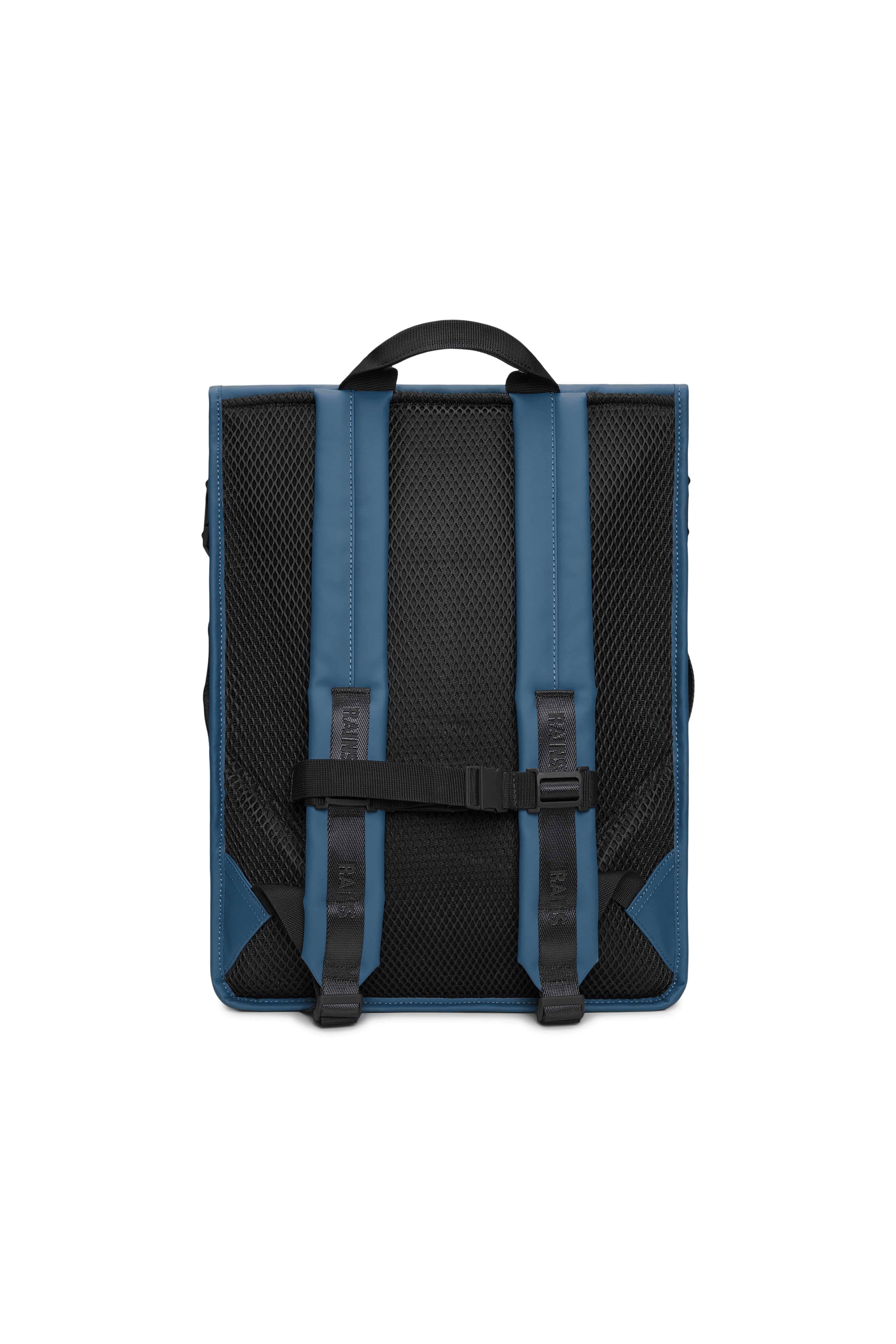Trail Rolltop Backpack is a sporty city staple, perfect for commutes on bike or foot. Trail Rolltop Backpack is characterized by a convenient rolltop opening. To protect essentials from rain, fold the rolltop into a tight scroll and secure using the snap compressions. This design leans into the sports-utility mood of the Trail family. It is detailed with an internal padded pocket and a front zip pocket for easy access. Finished off with a buckle-fastened chest strap for a secure ride-proof fit. Trail Rolltop Backpack is cut from Rains' signature PU fabric, engineered for carrying strength, durability and a smooth feel.
